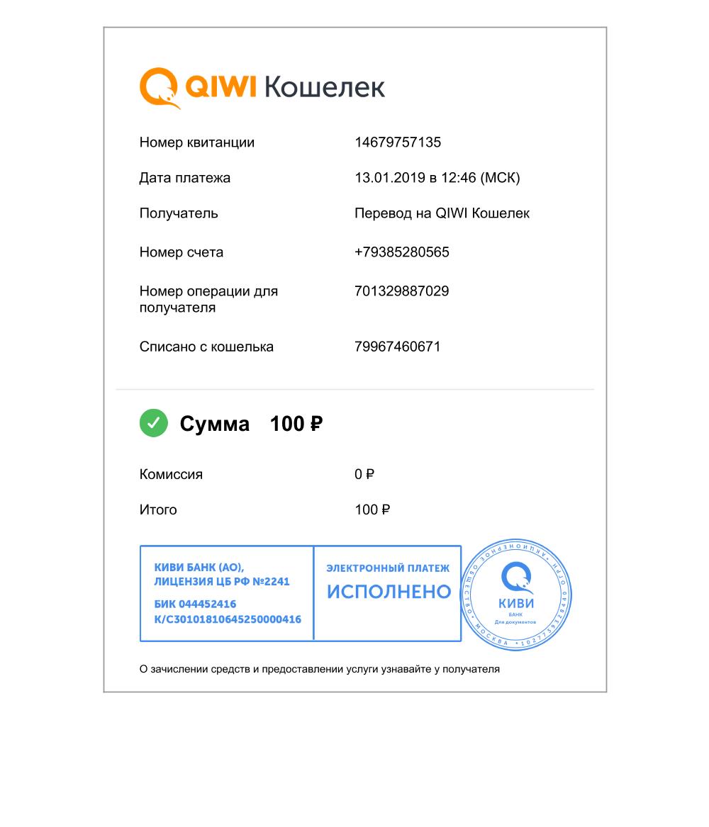 QIWI Кошелек. Комиссионное пополнение 796765528