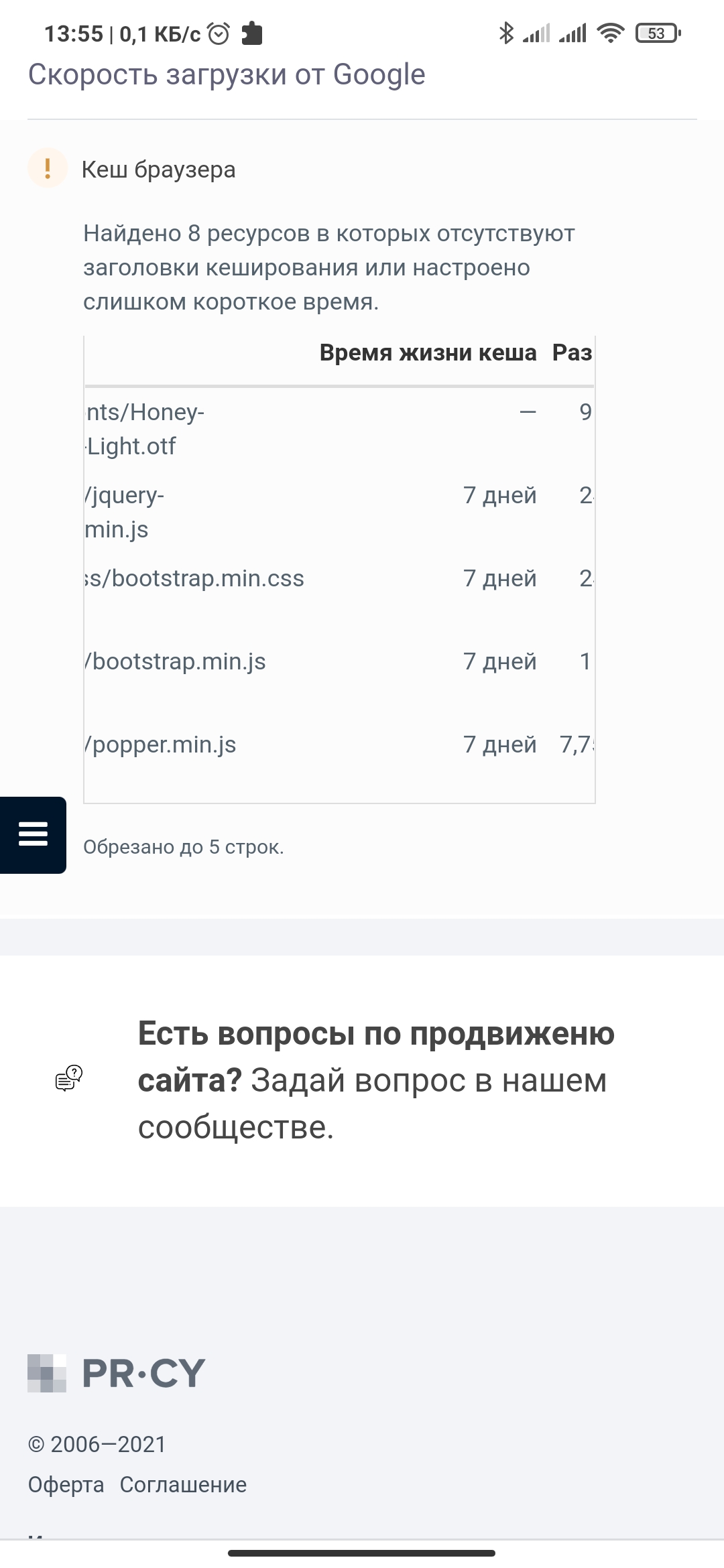 В панеле выставлено кэширование на 7 дней.
