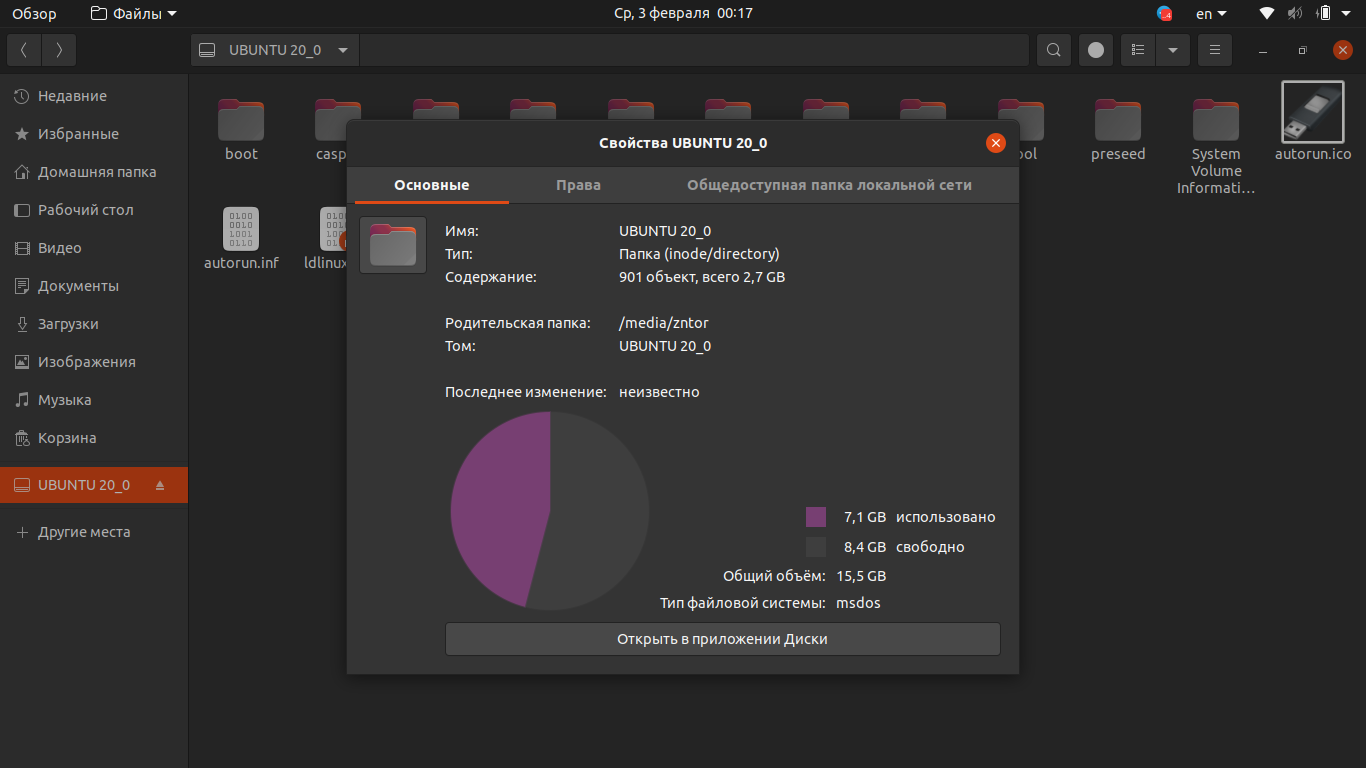 Скинул скрин установочной флешки ubuntu 20.04, флешка хоть и на 16, но судя по данным, 8 гиговой вполне должно хватить