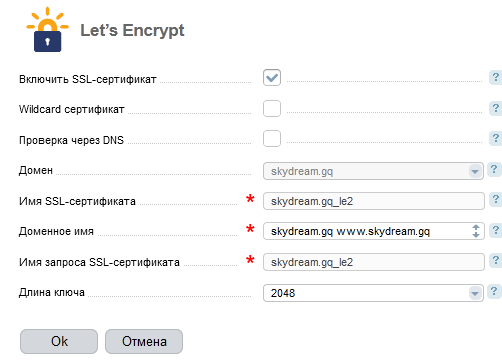 SkyDream , в разделе www-домены выбери свой домен поставь галочку на Защищенное соединение (SSL) и выбери новый LetsEncrypt
