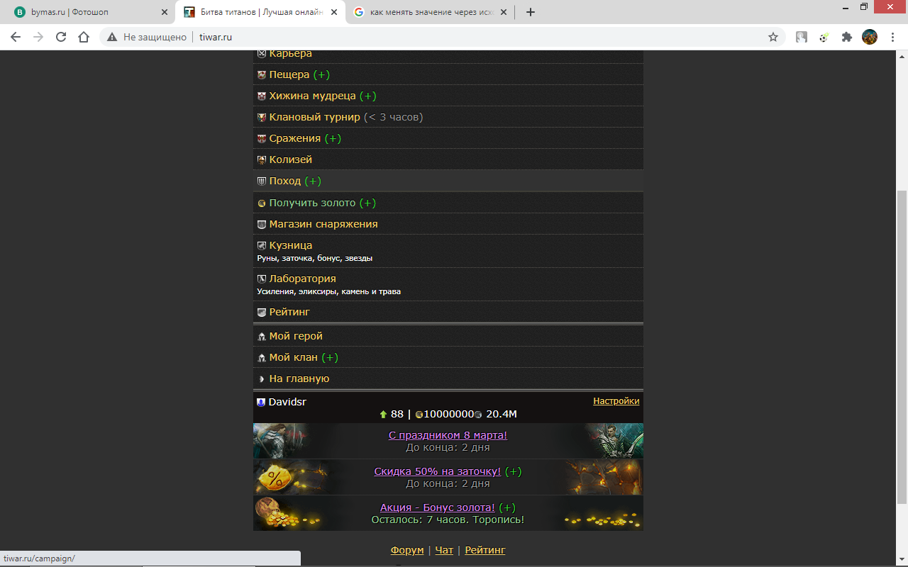 Severus (07.03.2021 в 16:51) danzo , да, только иначе называется Просмотр кода элемента, заходишь с компьютера, затем на страницу игры и нажимаешь на значение правой кнопкой мыши, появляется контекстное меню, выбираешь опцию Просмотр кода элемента, открывается диалоговое окно DevTools, видишь в нём значение которое нужно изменить, нажимаешь по нему левой кнопкой мыши дважды, вводишь необходимое значение, всё, нажимаешь в произвольном месте диалогового окна DevTools, значение зафиксировано, закрываешь диалоговое окно DevTools.