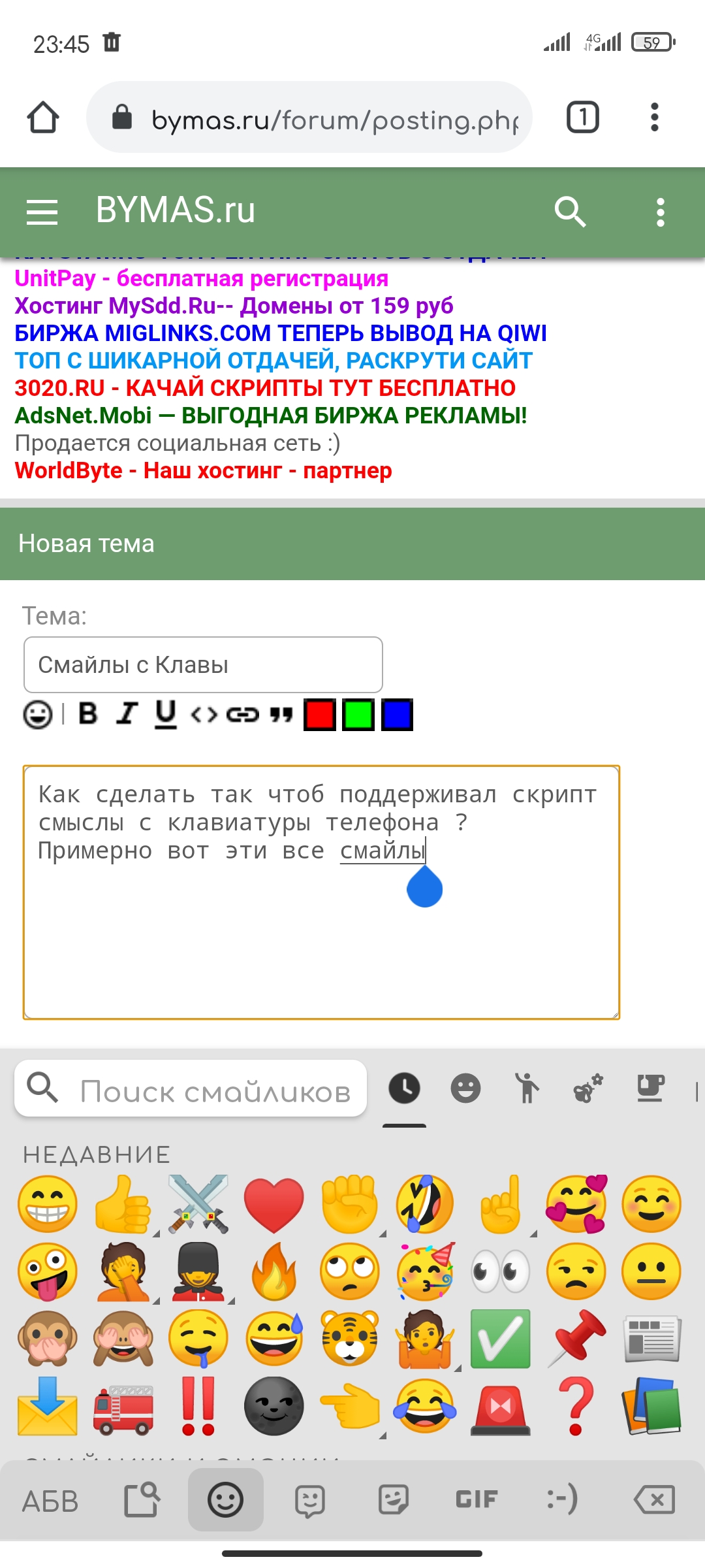Как сделать так чтоб поддерживал скрипт смайлы с клавиатуры телефона ?