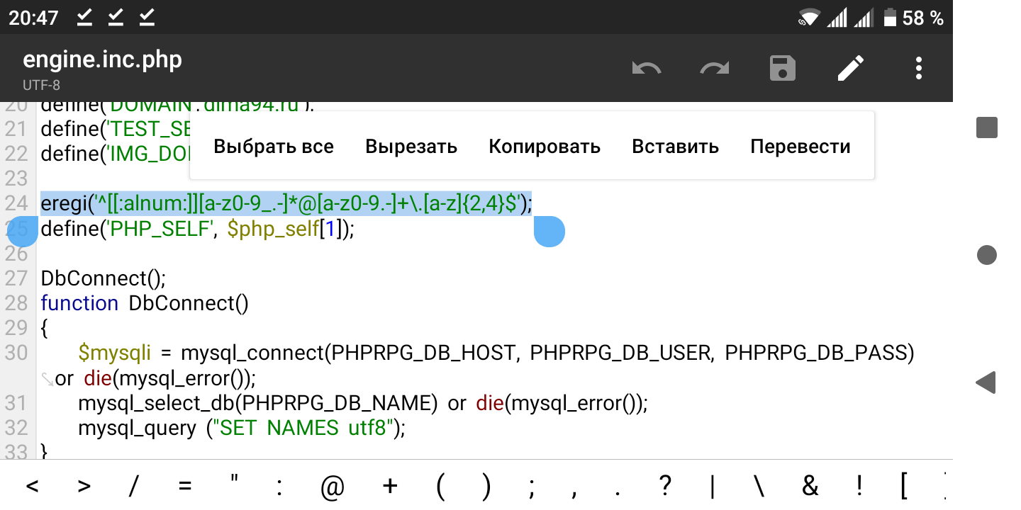Пупсь , вот я изменил на это , мой домен dima94.ru, в игре все работает за исключения кое чего там в кодах нада кое где перевести на русский язык и в чате так же задать кодиоовку , я многие фаилы перевел в двиге на кодиоовку utf-8 осталась чуть перевести верхнее меню и чат , ну когда увидил что в этой строке ошибка когда хотел поставить 1 крон для проверки и бросил переводить, так как без компа переводить каждый php код это ппц муки, может кто-то с данным вопросом поможет оч нада ((