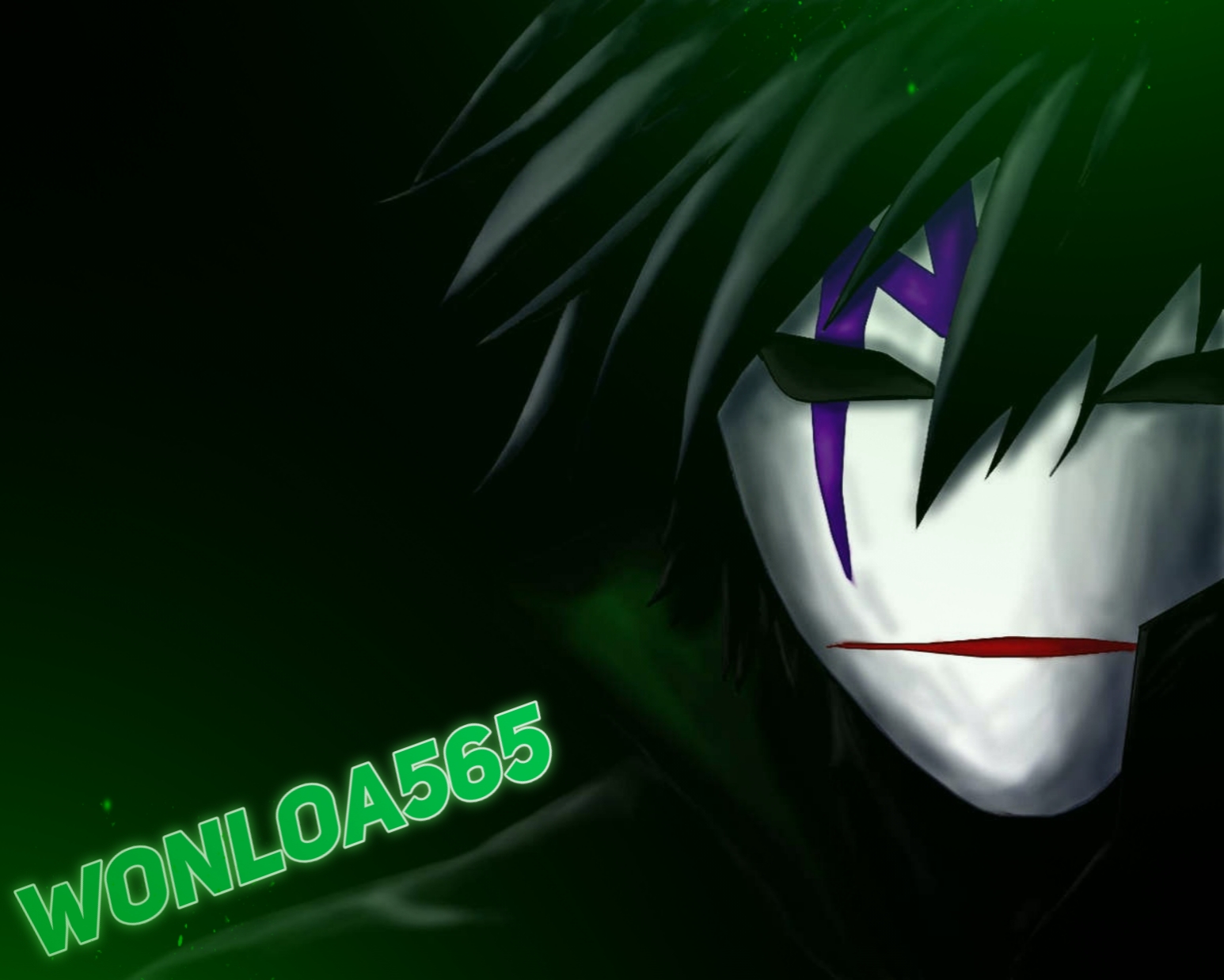 сделай мне логотип с аниме героем (герой Хэй (BK-201), аниме Darker Than Black) с текстом wonloa565