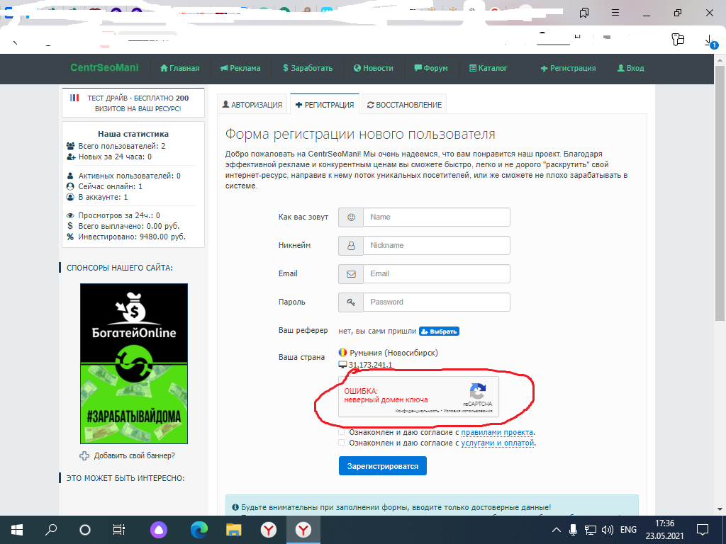 Может нужно домен под рекапчу в Гугле добавить, и ключик сгенерить, не?