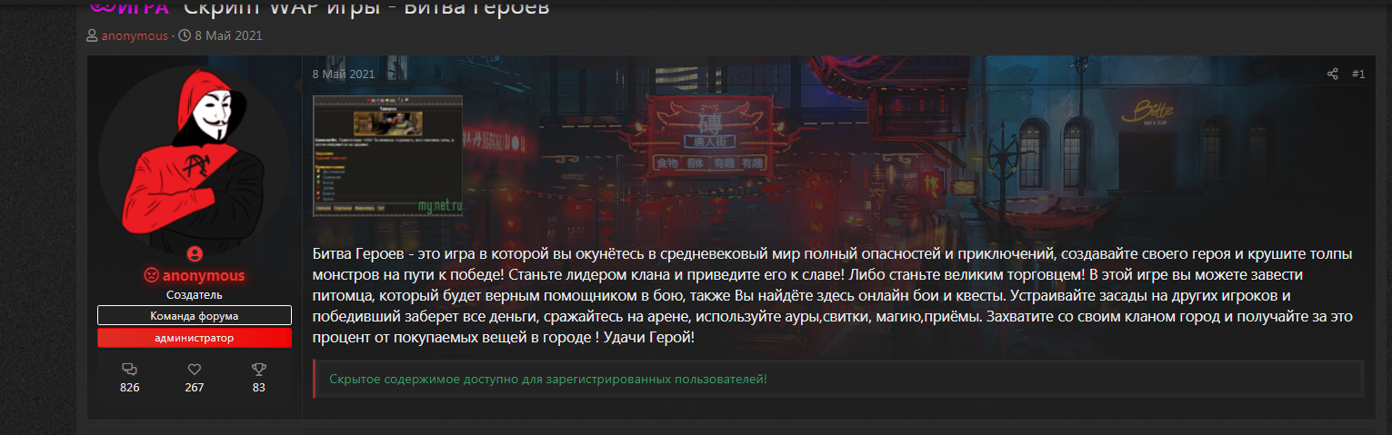 Алексей , я честно не помню, я его на сайте со скриптами находил, причем я видел твою изначальную версию игры, там был коричневый диз. Я даже приблизительно не помню какая версия была, явно дрянная, так как скрипт года 15-16, явно что не семерка