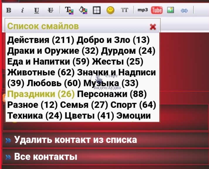 | Меню смайлов