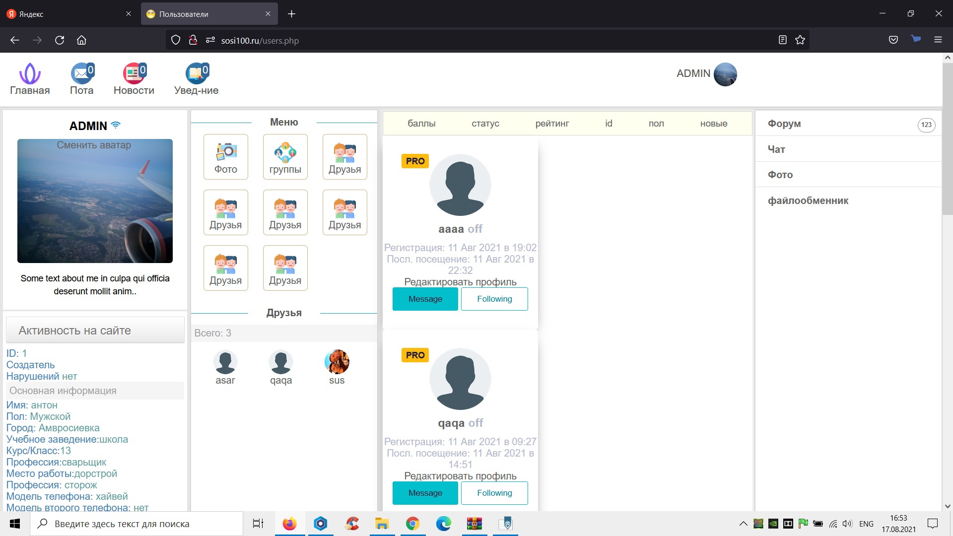 $q=mysql_query("SELECT `user`.`id` FROM `user` LEFT JOIN `user_group` ON `user`.`group_access` = `user_group`.`id` ORDER BY $sql_sort $por LIMIT $start, $set[p_str]"); while ($ank = mysql_fetch_assoc($q)) { $ank=get_user($ank['id']); echo "<div class='card-flex'> <div class='cards'> <a href='/info.php?id=$ank[id]'>"; avatar($ank['id']); echo "<span class='cards-content'>"; echo "<h3>$ank[nick]".online($ank['id'])."</h3>"; if ($ank['group_access']>1)echo "<span class='status'>$ank[group_name]</span><br />\n"; if ($sort=='rating') echo "<span class=\"ank_n\">Рейтинг:</span> <span class=\"ank_d\">$ank[rating]</span><br />\n"; if ($sort=='balls') echo "<span class=\"ank_n\">Рейтинг:</span> <span class=\"ank_d\">$ank[balls]</span><br />\n"; if ($sort=='pol') echo "<span class=\"ank_n\">Пол:</span> <span class=\"ank_d\">".(($ank['pol']==1)?'Мужской':'Женский')."</span><br />\n"; if ($sort=='id') echo "<span class=\"ank_n\">Регистрация:</span> <span class=\"ank_d\">".vremja($ank['date_reg'])."</span><br />\n"; echo "<span class=\"ank_n\">Посл. посещение:</span> <span class=\"ank_d\">".vremja($ank['date_last'])."</span><br />\n"; echo '</span></div></div>'; } Стр.: 1, 2