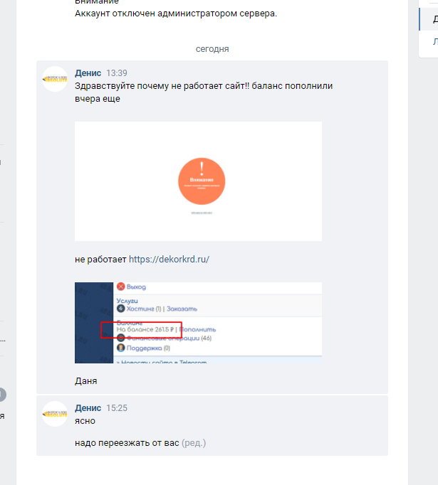 Поставили сайт организации на их хостинг вроде все норм и работает быстро, 3 дня назад забыли внести оплату и сайт лег спать. Вчера внесли оплату на 2 месяца вперед а сайт до сих пор лежит с ошибкой "Аккаунт отключён администрацией сервера". Пишу админу Даня Холодный Вконтакте а от него тупо игнор, сам в сети и не читает!