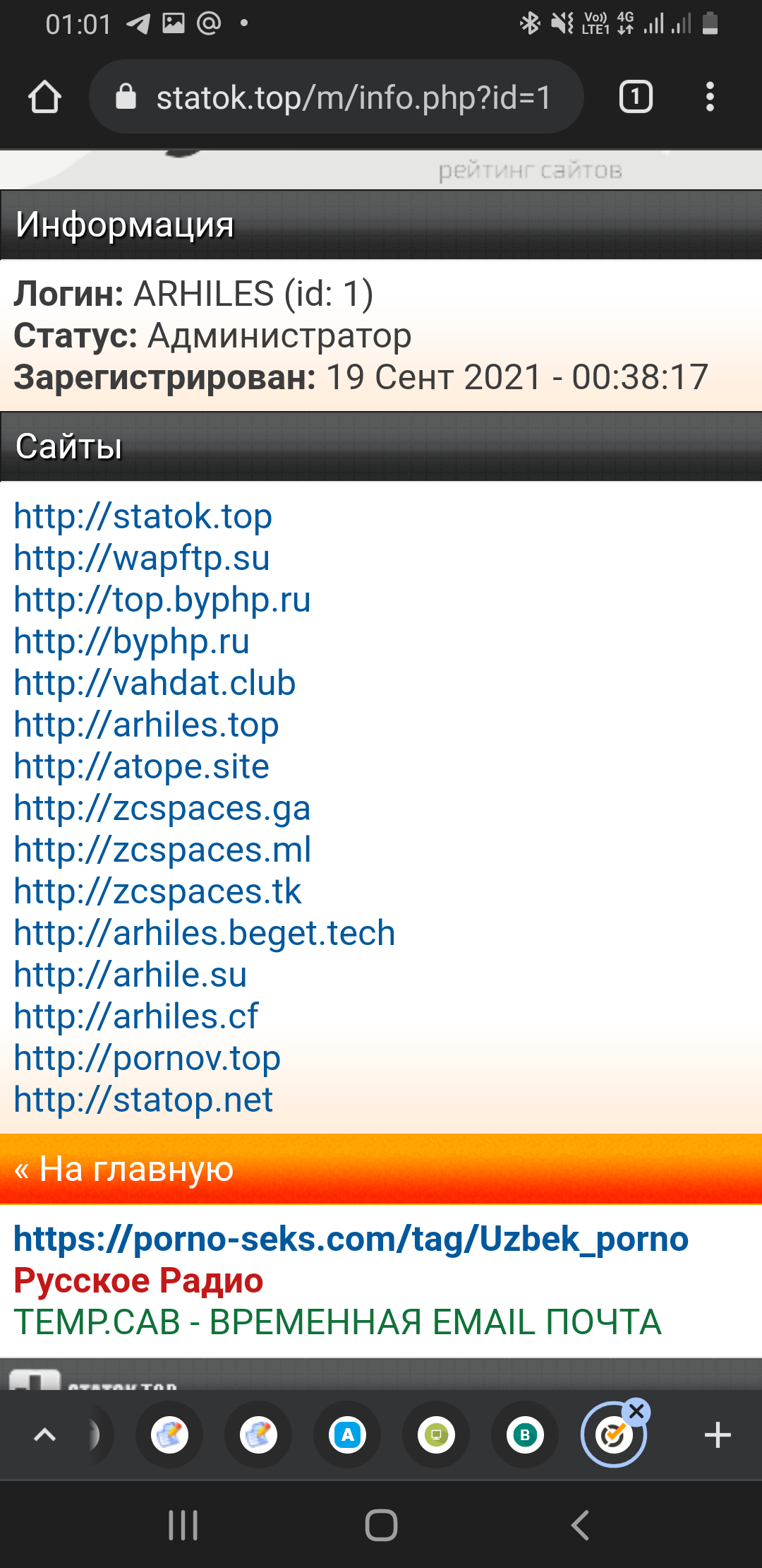 )(aOS , вот мой сайт который я добавил 2 сайт в блоке остолнь активно