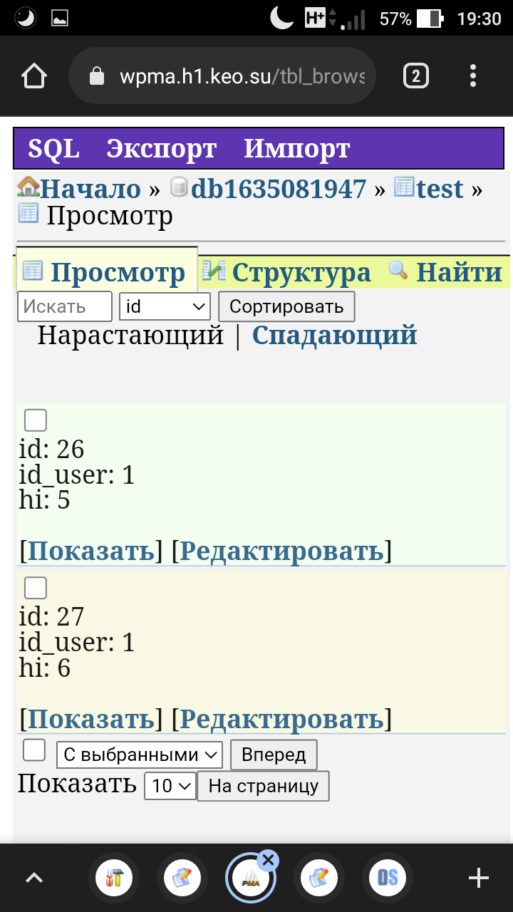 $resultArrray = array(); $result = mysql_query("SELECT * FROM `test` WHERE `id_user` = '".$user['id'] ."'"); while($row = mysql_fetch_assoc($result)) { $resultArray[] = $row } if (array_search('5', array_column($resultArray, 'hi'))) { echo '5 куплен'; } else { echo '5 не куплен'; } if (array_search('6', array_column($resultArray, 'hi'))) { echo '6 куплен'; } else { echo '6 не куплен'; }