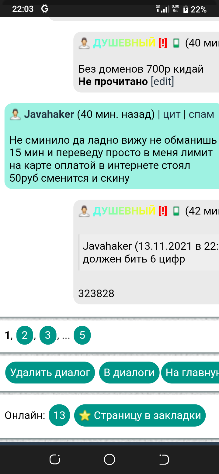 Max_Daniels , ВО первых то что я на доске из за того что чел который меня кинул начал нюнять ибо я ему денег не кинул, я нормально с ним общался, попросил как человека подожди я отдам, но что сделать если ему пох, во вторых ище раз говорю скрипта у меня который он якобы сделал, даже копии нет понимаешь? Во третьих я ему кинул 100грн предоплату а за что? Не за что потому что скрипта нет это раз, во вторых 100грн я ему кинул, а в итоге я на доске.