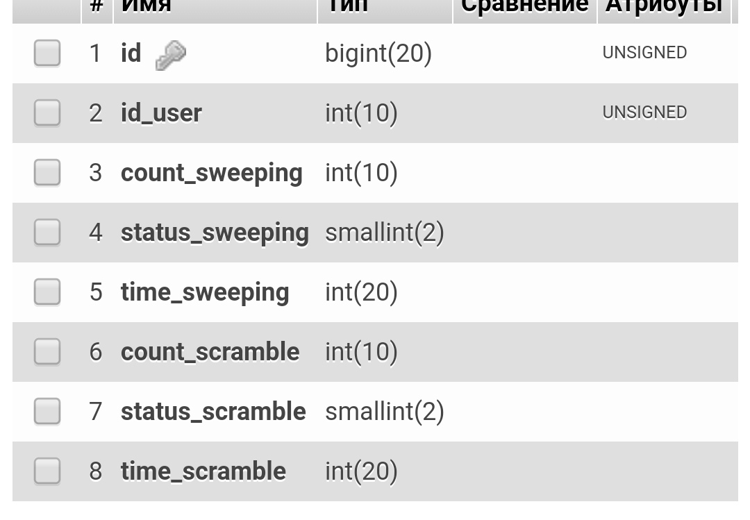 Взять столбик status_sweeping и status_scramble c таблицы pit , где id_user = айди игрока .