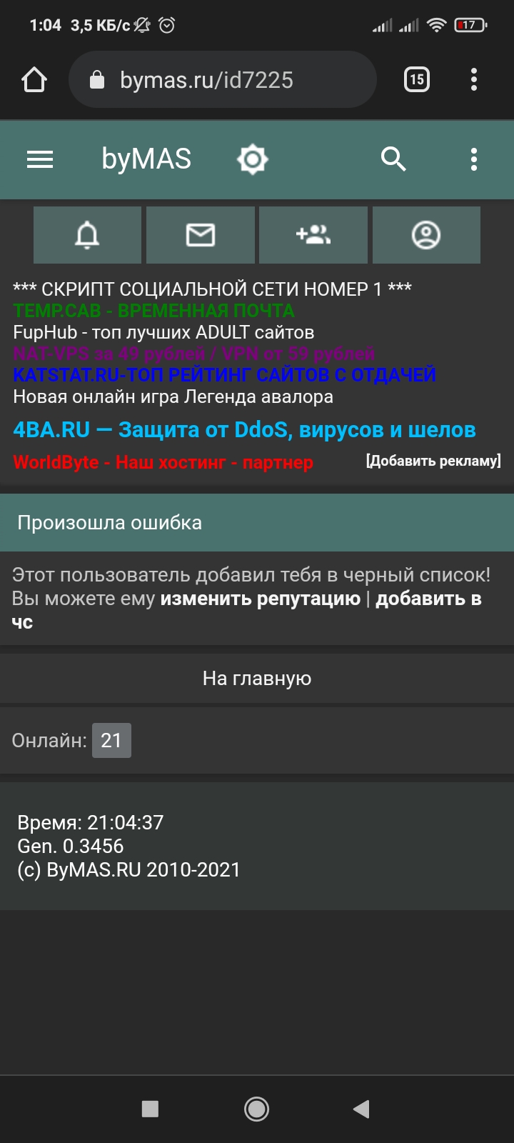 Не оскорблял данного персонажа,а оказался в ЧС изначально.