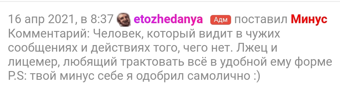 и тут же какой то минус нелепый Сегодня в 14:31 Пупсь Сайбот поставил Минус