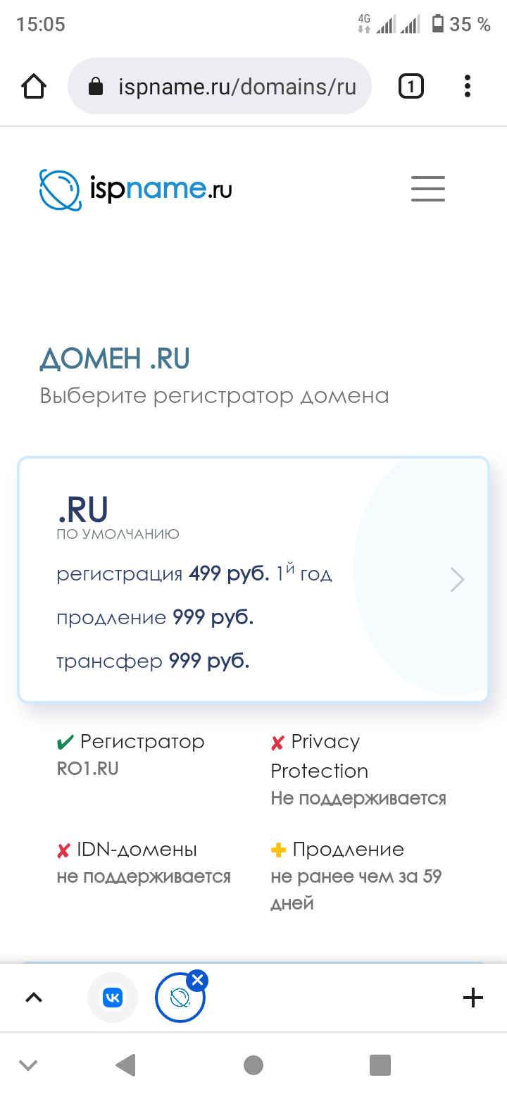 Сейчас у них адрес ispname.ru, вчера ещё стоило 150р рушка а сегодня понял цену в несколько раз. Продление в 10 раз дороже. На оф регистраторе и того меньше.