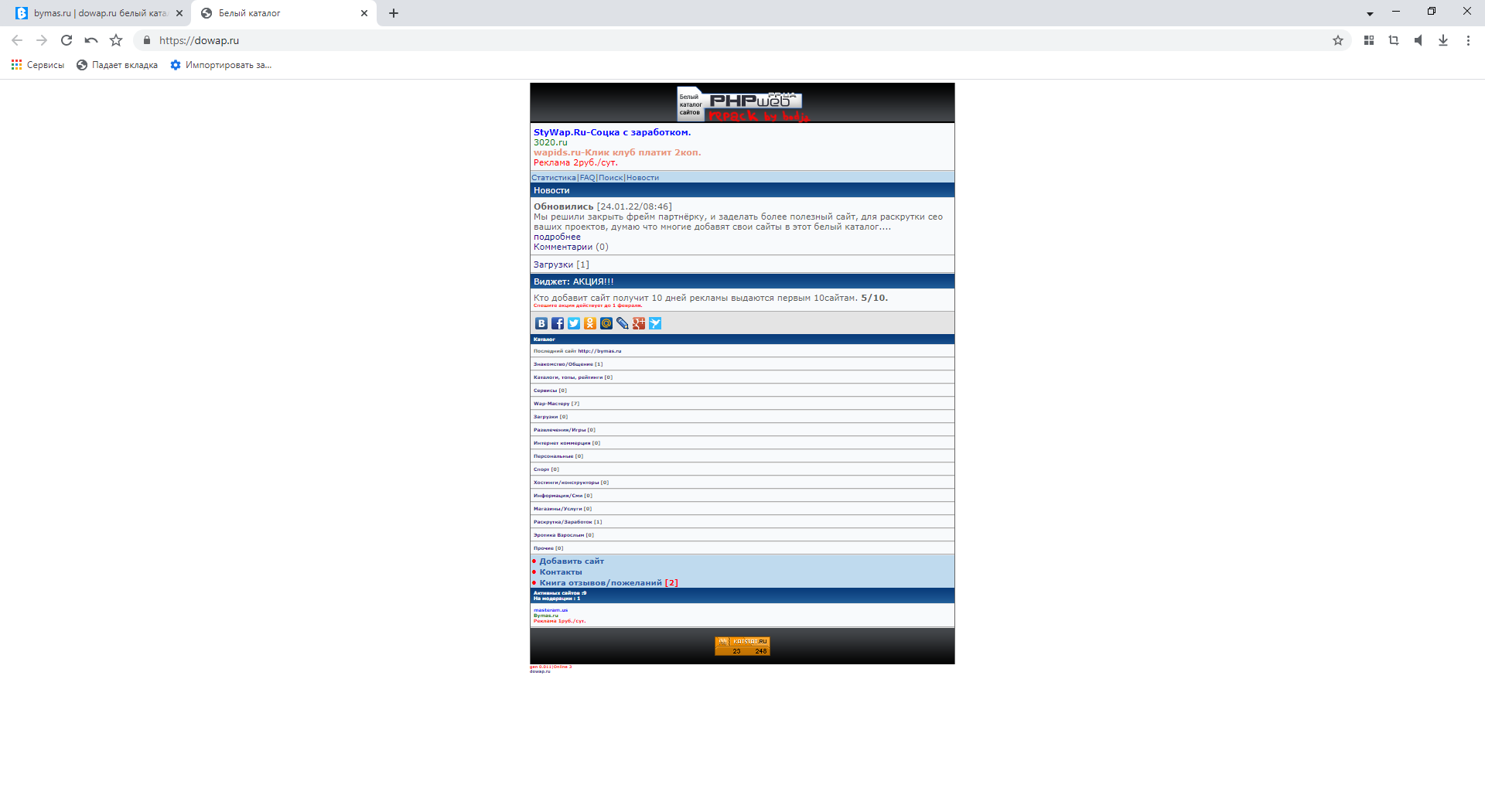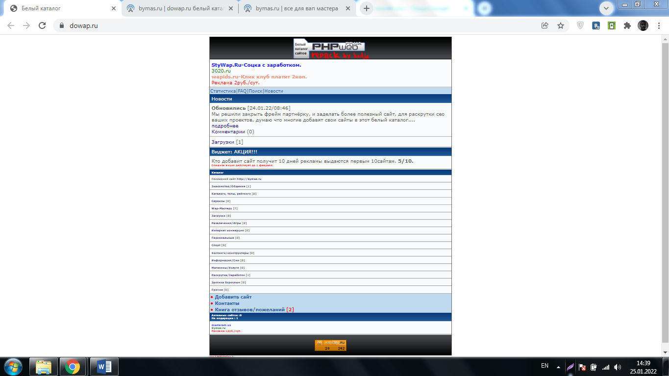 Полезный сайт для сео аналитики, действует акция первым 10 сайтам добавивших в каталог 10 дней бесплатной рекламы.