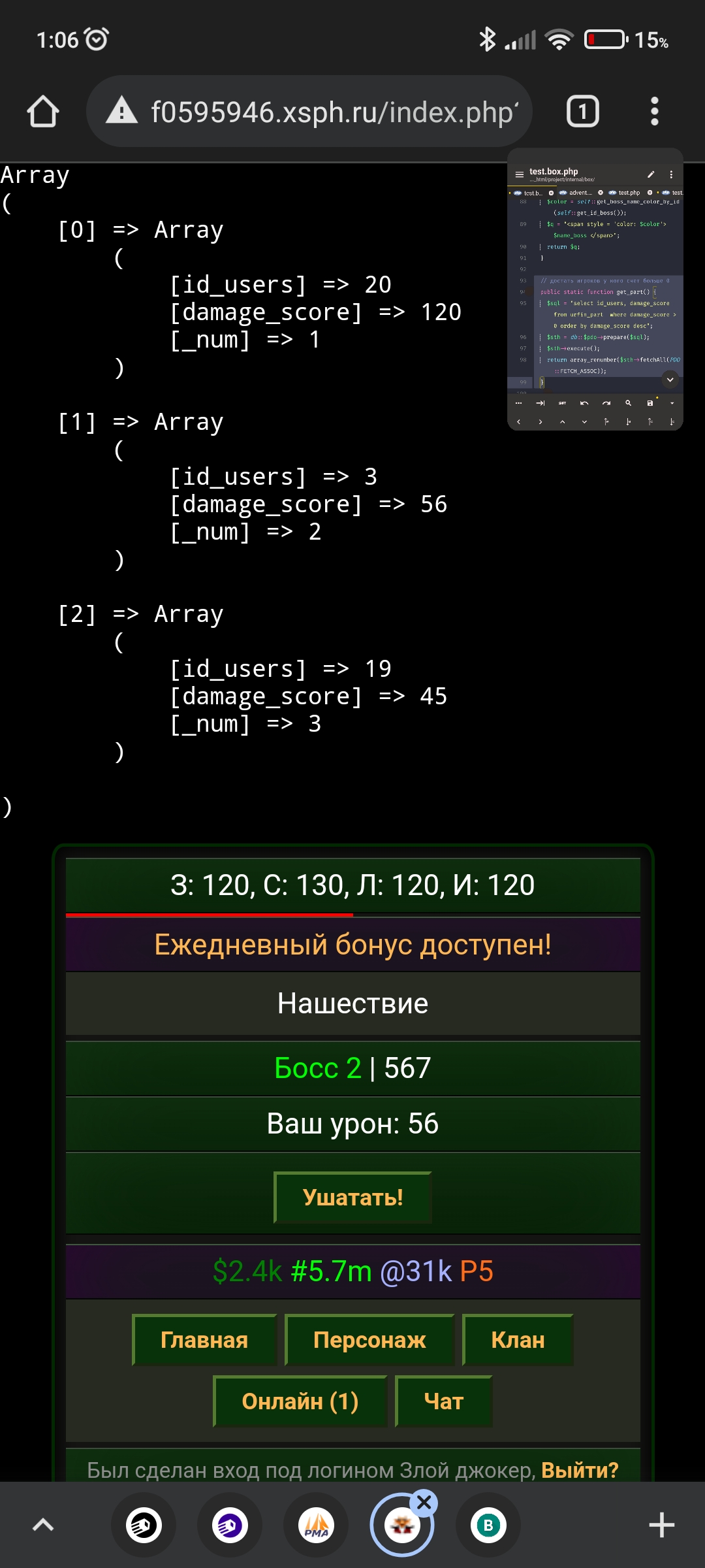 $sql = "select id_users, damage_score from urfin_part where damage_score > 0 order by damage_score desc";