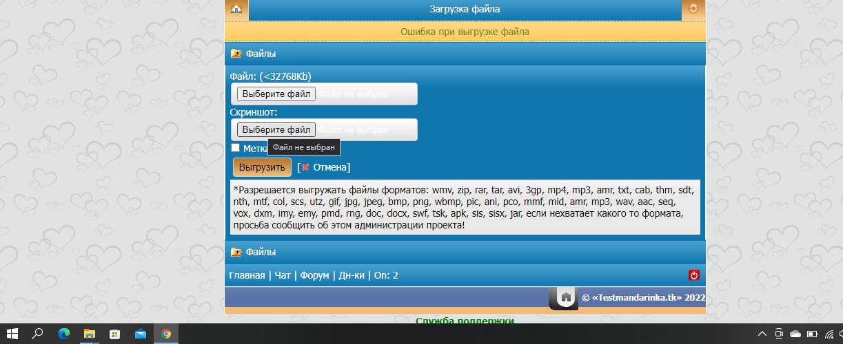здраствуйте дорогие мастера! у меня вопрос к вам загружаю музыку в личные файлы вот что пишет ошибка! что это может быть! как же и видео. ошибка ! маленькие размеры грузит! а вот выше 2 мегобайт! пишет ошибку!