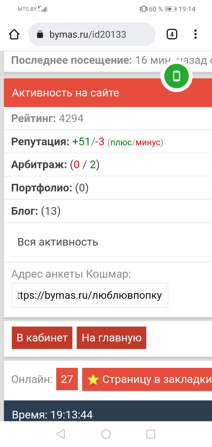 онлайн добавил. Когда смотришь свою анкету то все норм. а когда смотришь чужую анкету то значек онлайна уезжает..
