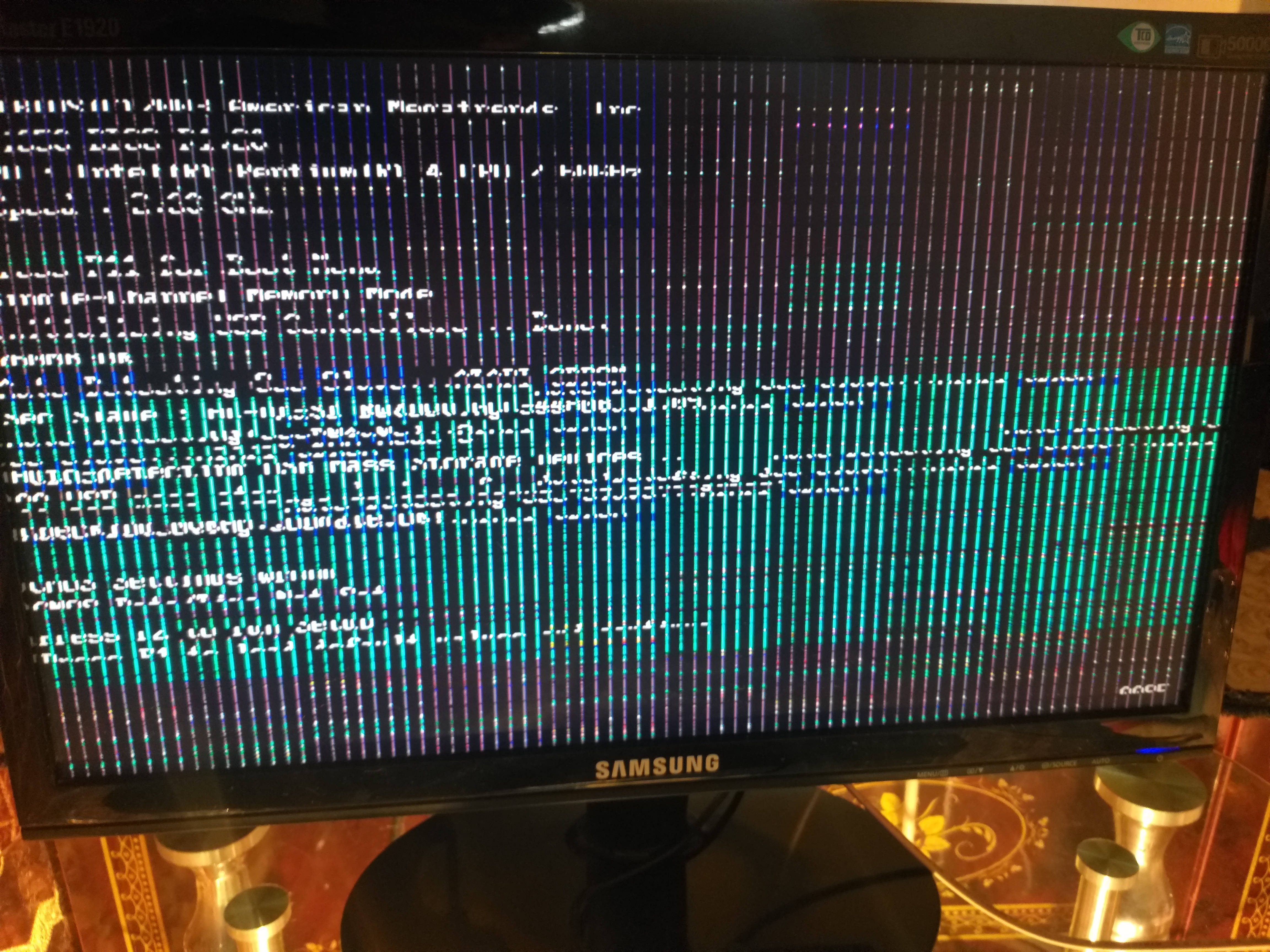 Замени кабель HDMI, VGA в зависимости каким подключается. Не поможет пробуй подрубить встроенную видюху или на другое устройство. Если ок то проблема с видюхой на ПК если тоже самое то монитору.