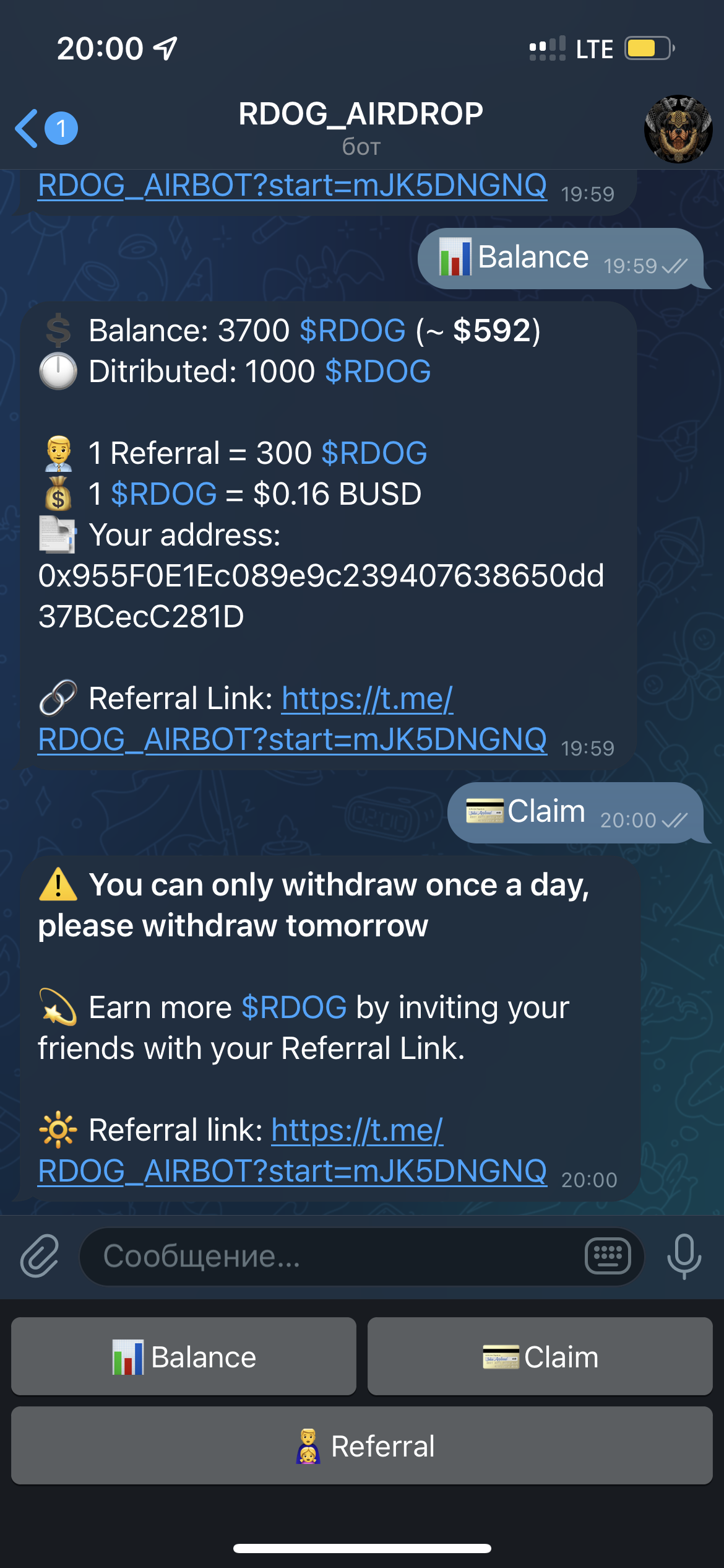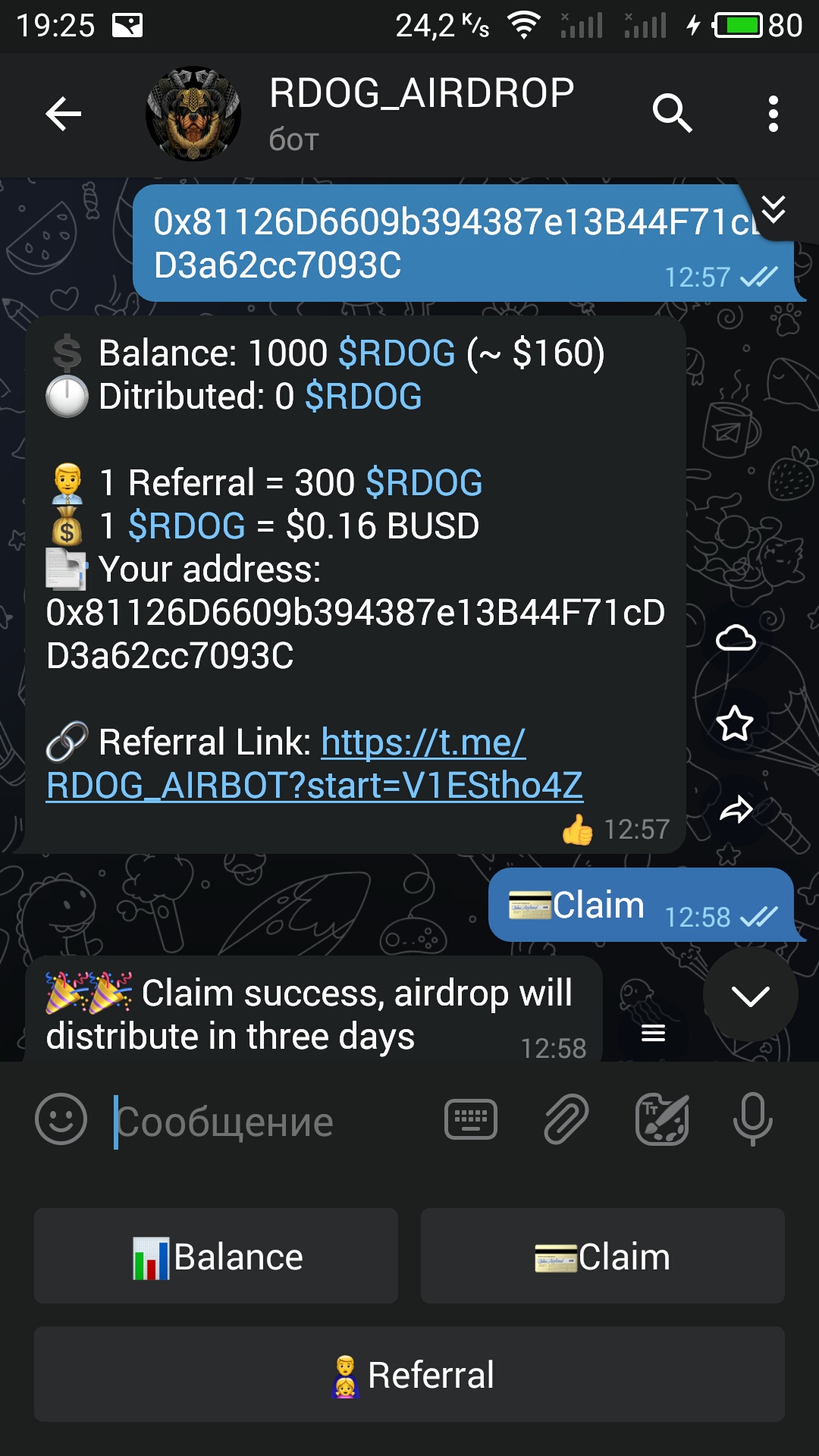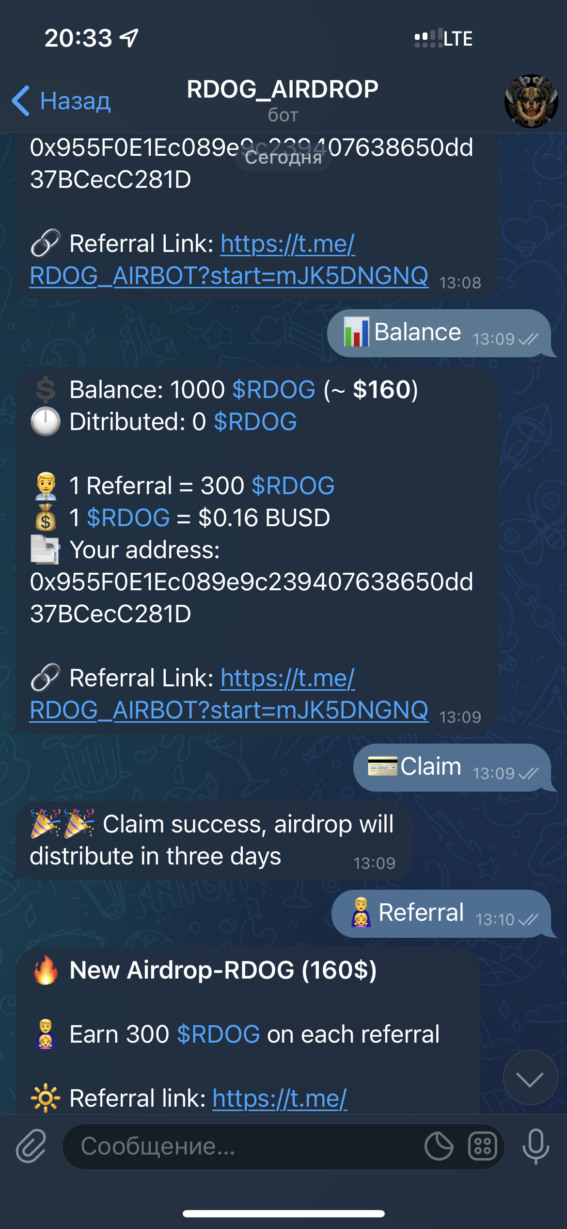 | RDOG Аирдроп (~40$)