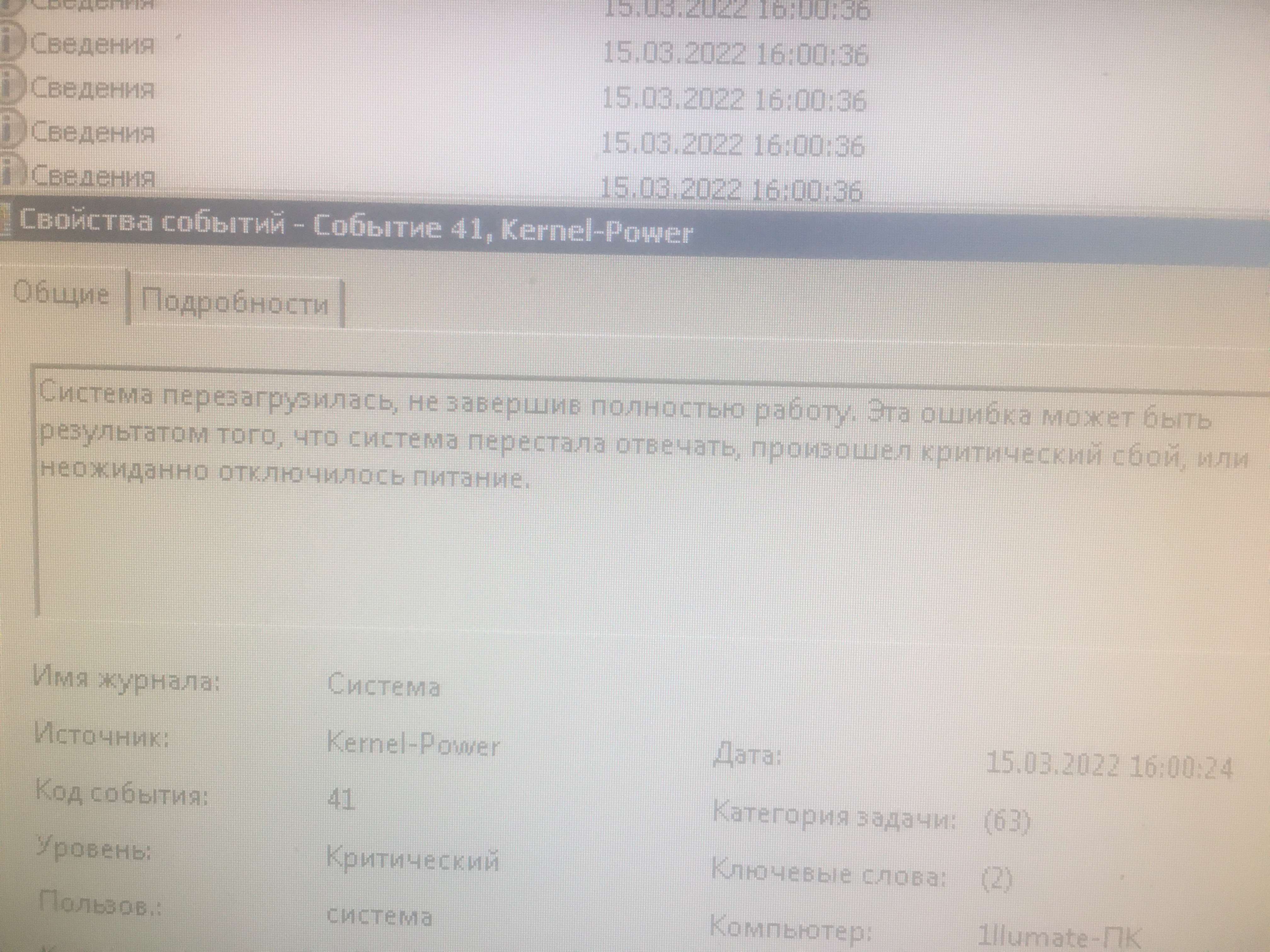 до этого события есть? если до нет критических ошибок, то проблема в железе.