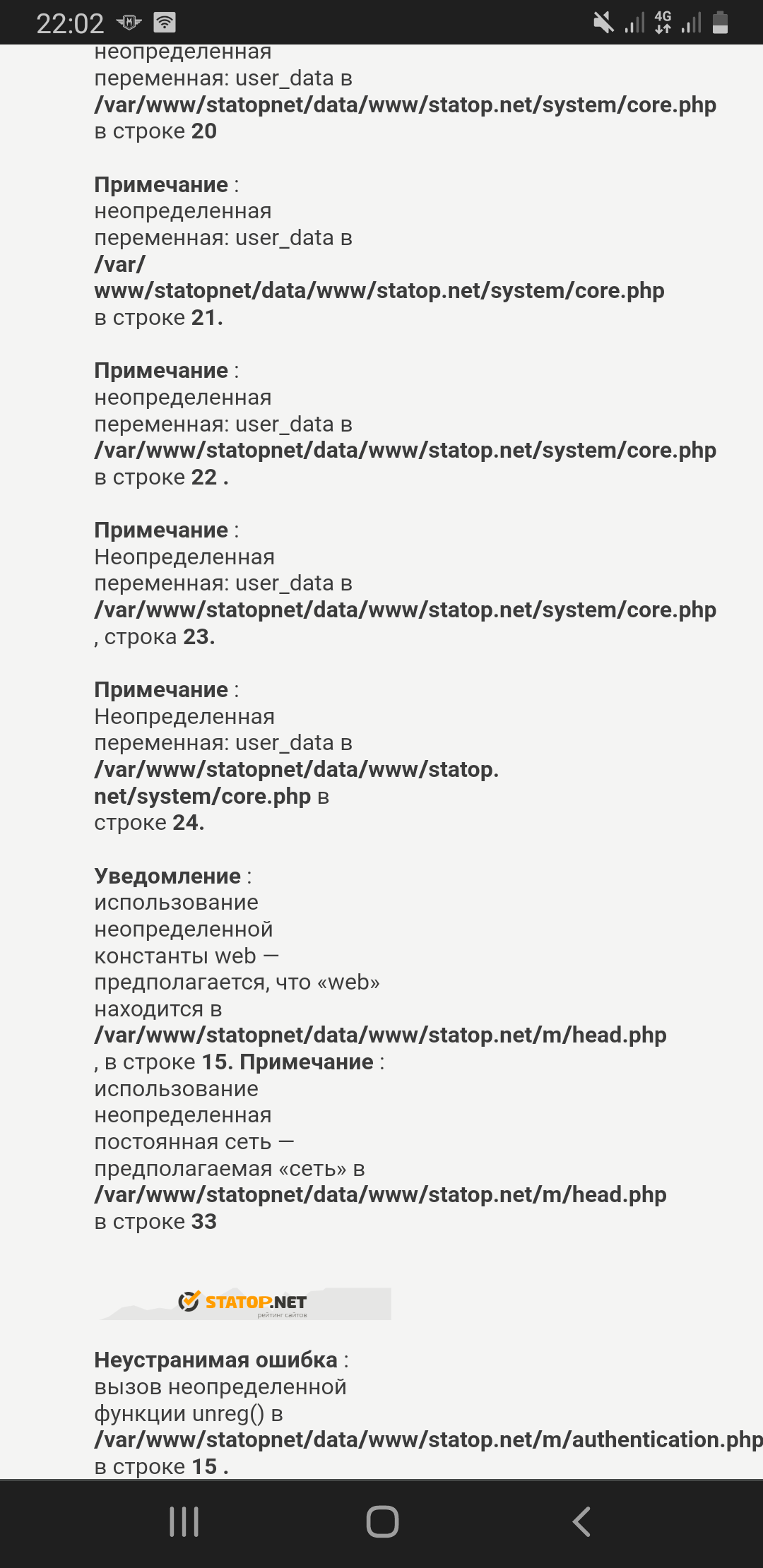 ARHILES (28.03.2022 в 19:43) Всем ку сегодня заметил что не работает вход на сайт раньше все нормально был удалил файл, добавил ещё со старой бекап но все равноне работает Ссылки на сайт https://statop.net/m/authentication
