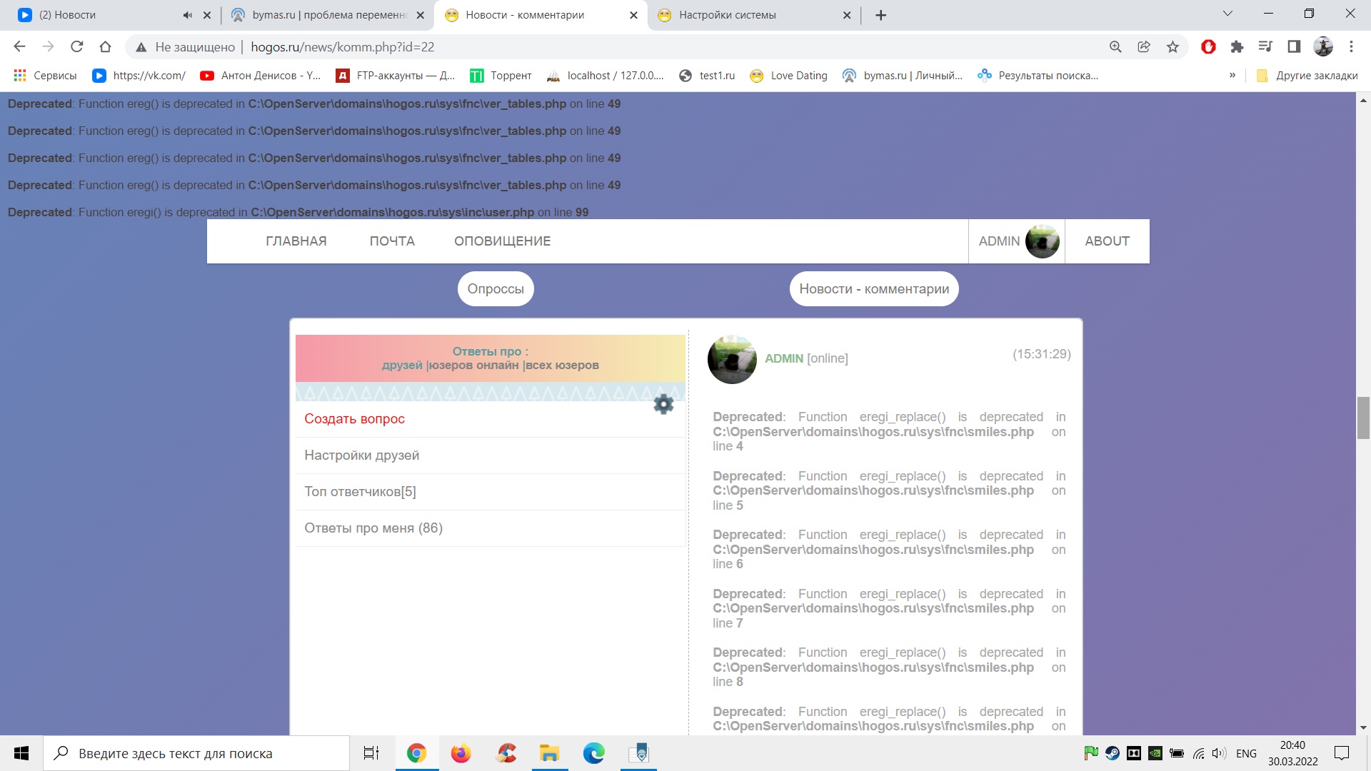 $id = filter_input(INPUT_GET, 'id', FILTER_VALIDATE_INT); // айдишник выбираемого пользуна: user/?id=5 $ank = mysql_fetch_assoc(mysql_query("select * from `user` where `id` = '$id'")); // данные выбранного пользуна с айдишником - 5 155876556 (30.03.2022 в 13:21) всем привет, такая беда , есть у меня инклудный файл, inc.php он у меня отображается на всех страницах, но захожу в комментарии новостей , содержимое пропадает, я понял что ошибка в переменной, в инклудном файле прописал код ошибка решилась, но когда захожу на страницу другого пользователя например с ID=2 то отображается своя страница а не пользователя с ID=2, я так понимаю что выводит это все переменная = $user['id'] как сделать вывод переменной что бы на странице комментарий содержимое показывалос? могу скинуть файл. помогите плиз .