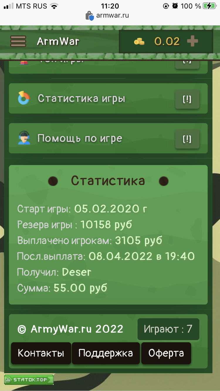 Я короче проверил домен когда он был регнут, а регнут был 6 дней назад, и вот я не догоняю как за 6 дней можно было вывести 3к и как работал он без домена 2 года?вот ссылка на скам так как я уже продпологаю. https://armwar.ru ребята только не регайтесь и не влаживайте, так как доверия что то нету у такого сайта. Возможно однодневка. Ну а более подробно за неё уже написали на https://stywap.ru