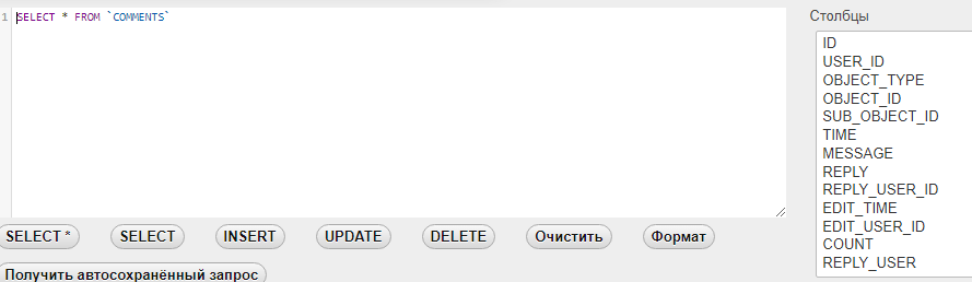 Запрос на вывод комментариев покажи