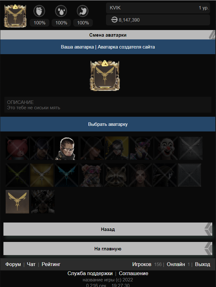 добавлена возможность смены аватарок и рамок