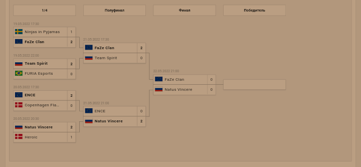 Сегодня 22.05.2022 | 21:00 Финал Majorа) FaZe Clan vs Natus Vincere) Кто против кого?) Делаем ставки)