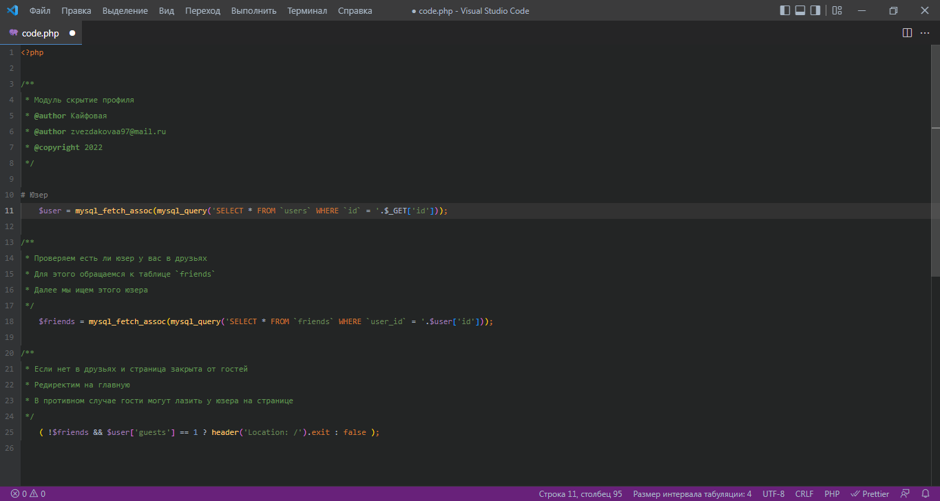 $closed=mysql_fetch_array(mysql_query("SELECT * FROM `covered_page` WHERE `id_user` = '$ank[id]' AND `time` > '$time' LIMIT 1")); if ($ank['id'] != $user['id'] && $user['group_access']!==0 && $closed['time']>=$time) { if ($ank['pol']==1)$pol='Закрыл'; else $pol='Закрыла'; ?> <div class="botton-fon"> <? avatar4($ank['id']); echo "<div class='text-close-page'>Извените, $ank[nick] $pol временно свою старницу!</div>"; ?> </div> <? exit; } ________