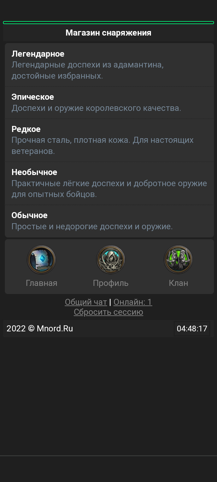 • Магазин снаряжения
