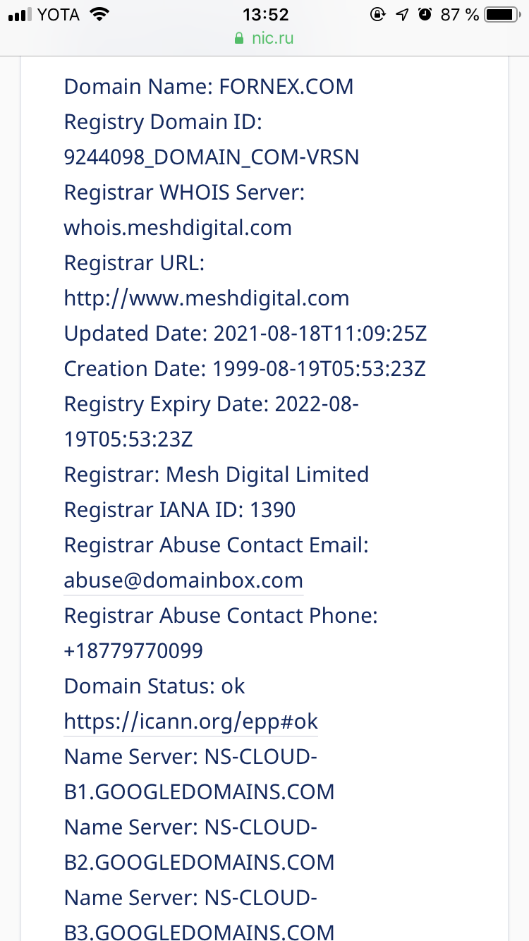 Твой форнекс зарегистрирован 30 июля 2020 года. О чем речь? Ты даже не знаешь когда он отрылся, и пытаешься мне доказать, что это отличный хостинг