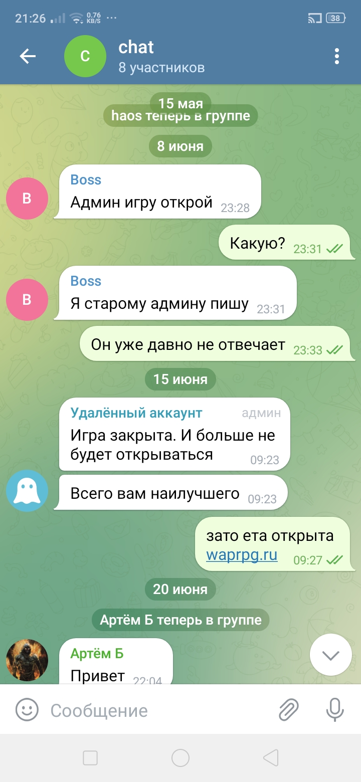 Сот сообщение от старого админа