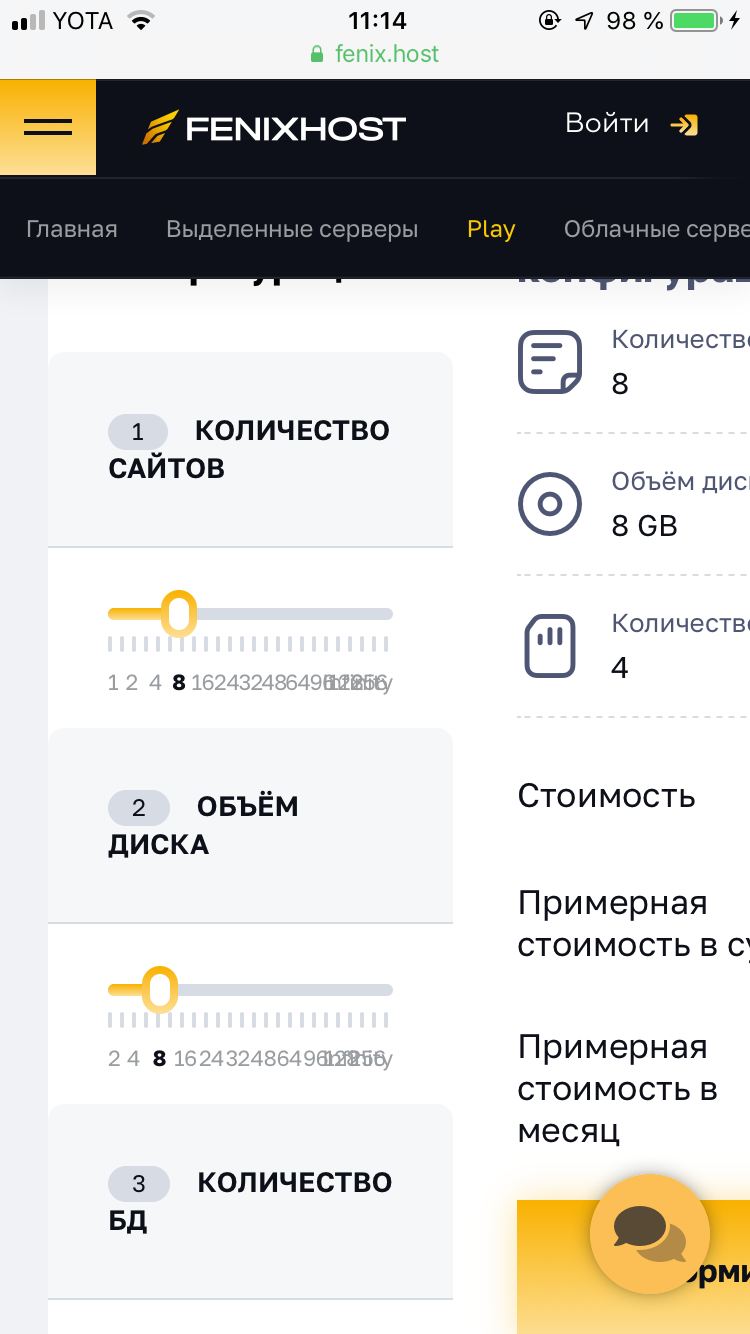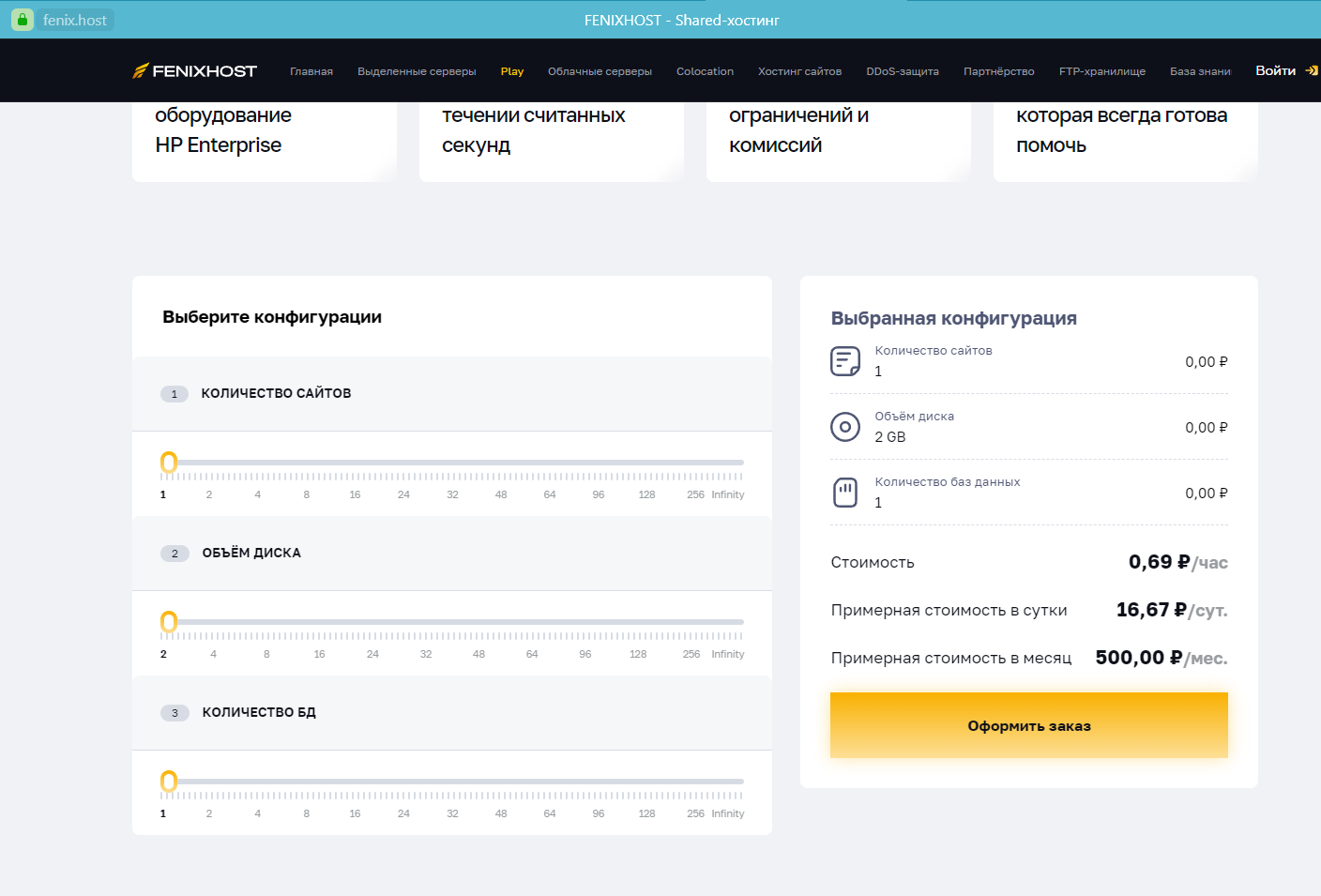 Конфигуратор на сайте "просто потыкать", по факту вы можете выбрать любую конфигурацию хостинга сайтов =).