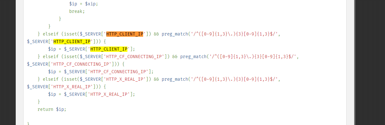 всё, остальное всё лишний сахарок открой Официальную документацию (ссылка) и покажи мне HTTP_CLIENT_IP или HTTP_X_FORWARDED_FOR