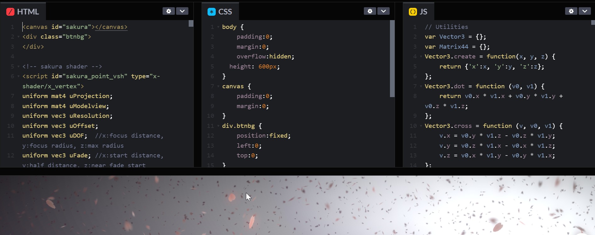 В блогах сделать как на codepen , html, css, js и предпросмотр.