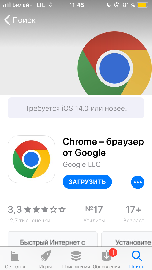 Айос старый, не могу скачать, попробовал яндекс