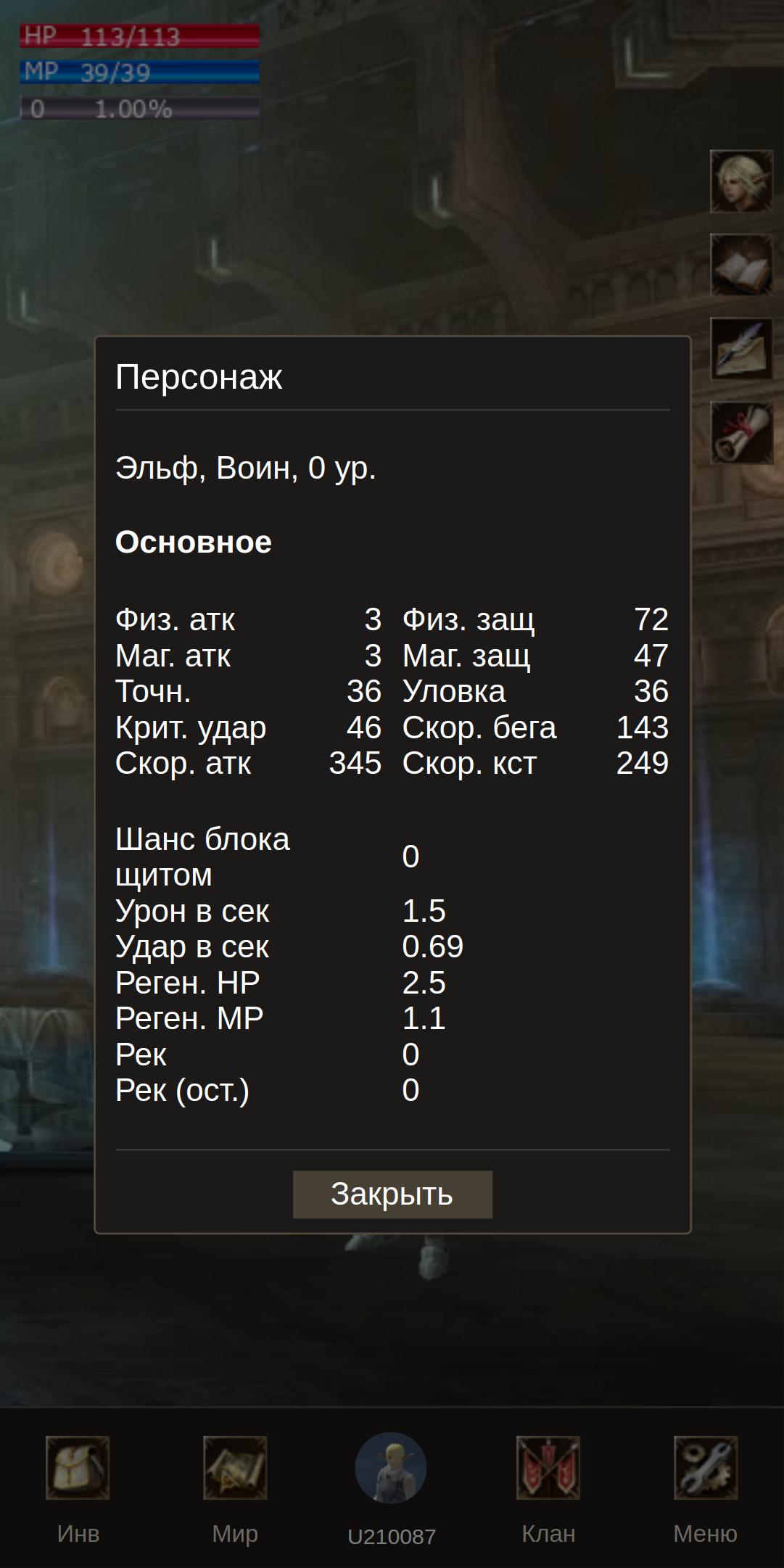 Немного обновил интерфейс игра. Уже готова система быстрого старта, регенерация и дописывается боевая система + дроп с мобов.