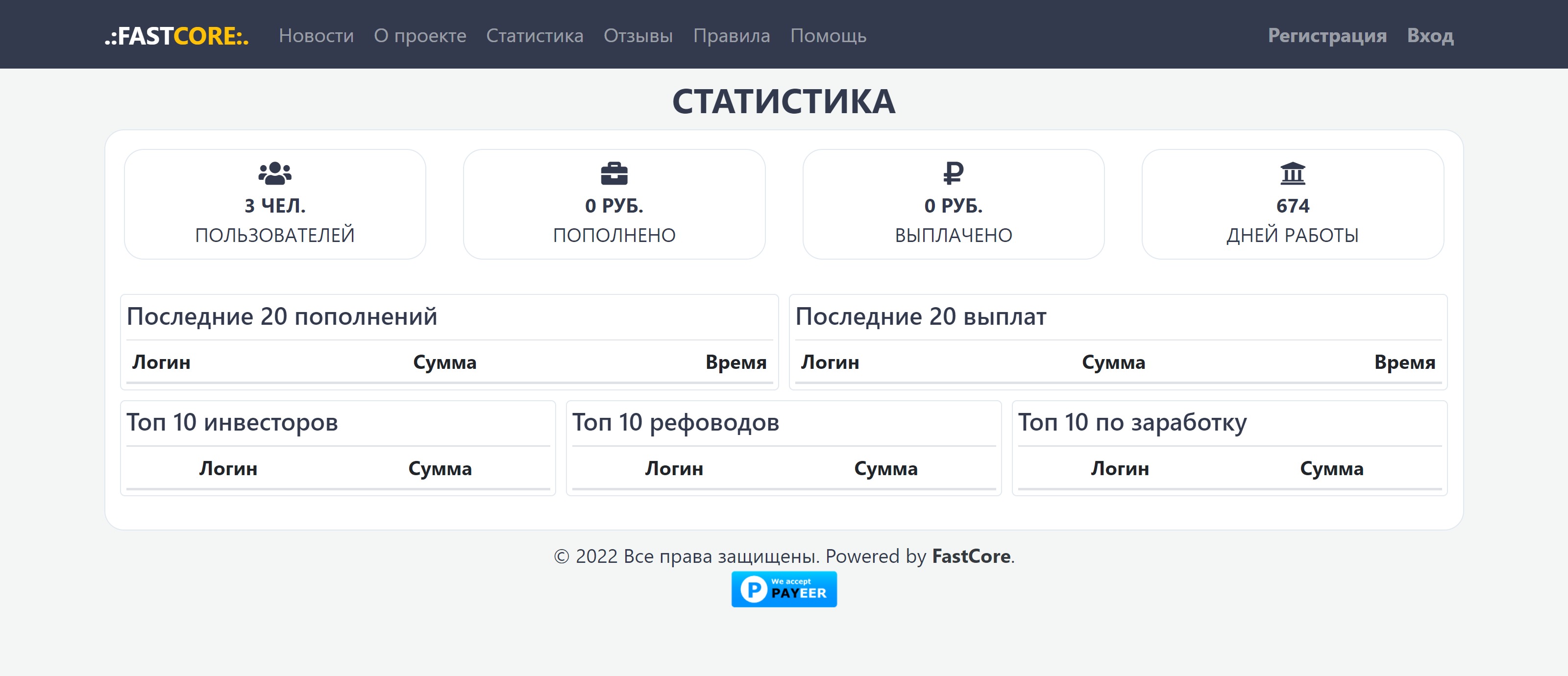 bymyny (11 сен 2022, в 20:16) Скрипт FastCore для создания экономических игр. Есть весь привычный функционал как в обычных фермах. Однако теперь это все работает с современной версией php и намного быстрее чем аналогичные скрипты. К тому же он безопасен. Легко можно отредактировать и доработать функционал и внешний вид. По классике работает все так же с PAYEER. https://disk.yandex.ru/d/wymApOfJ24081Q