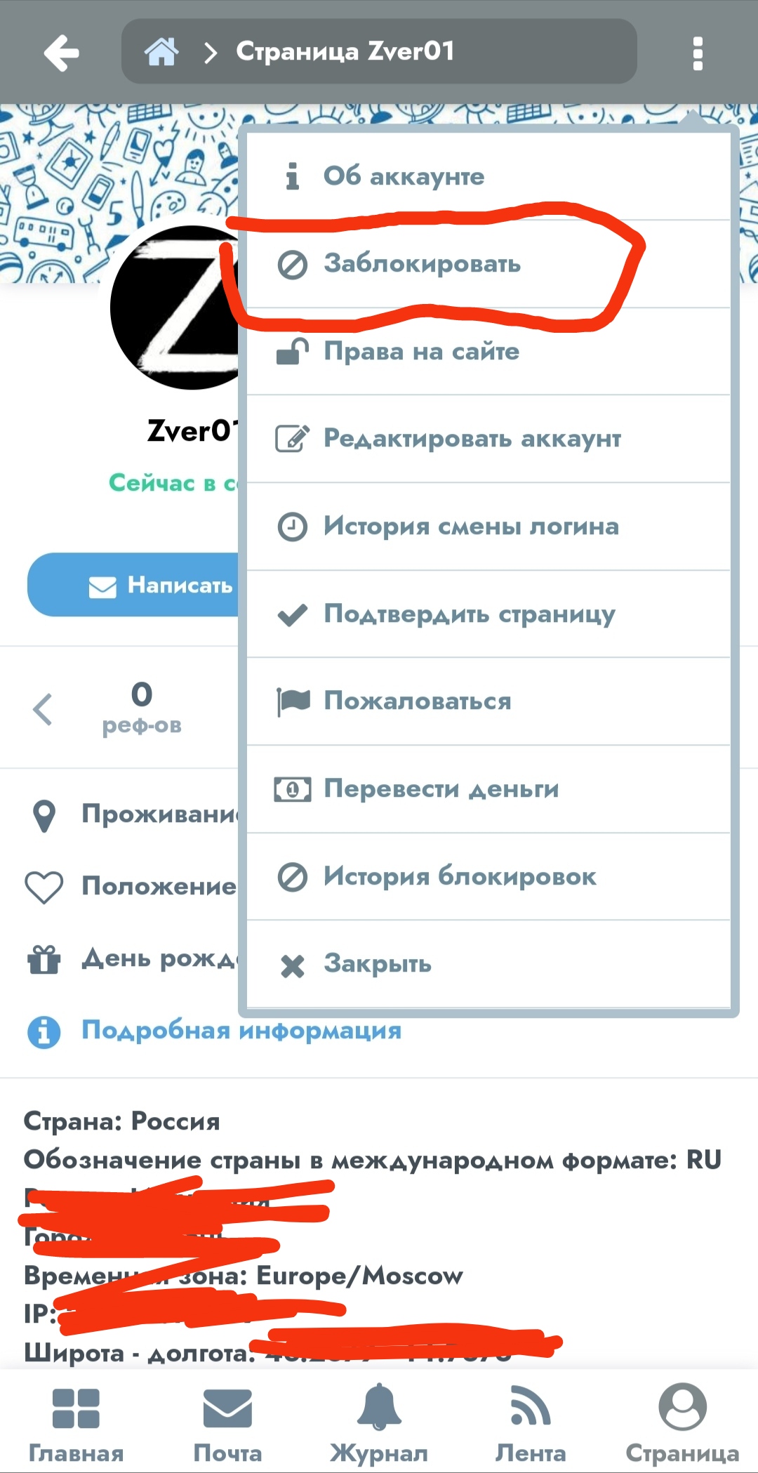 Вот. Заблокировать это и есть забанить