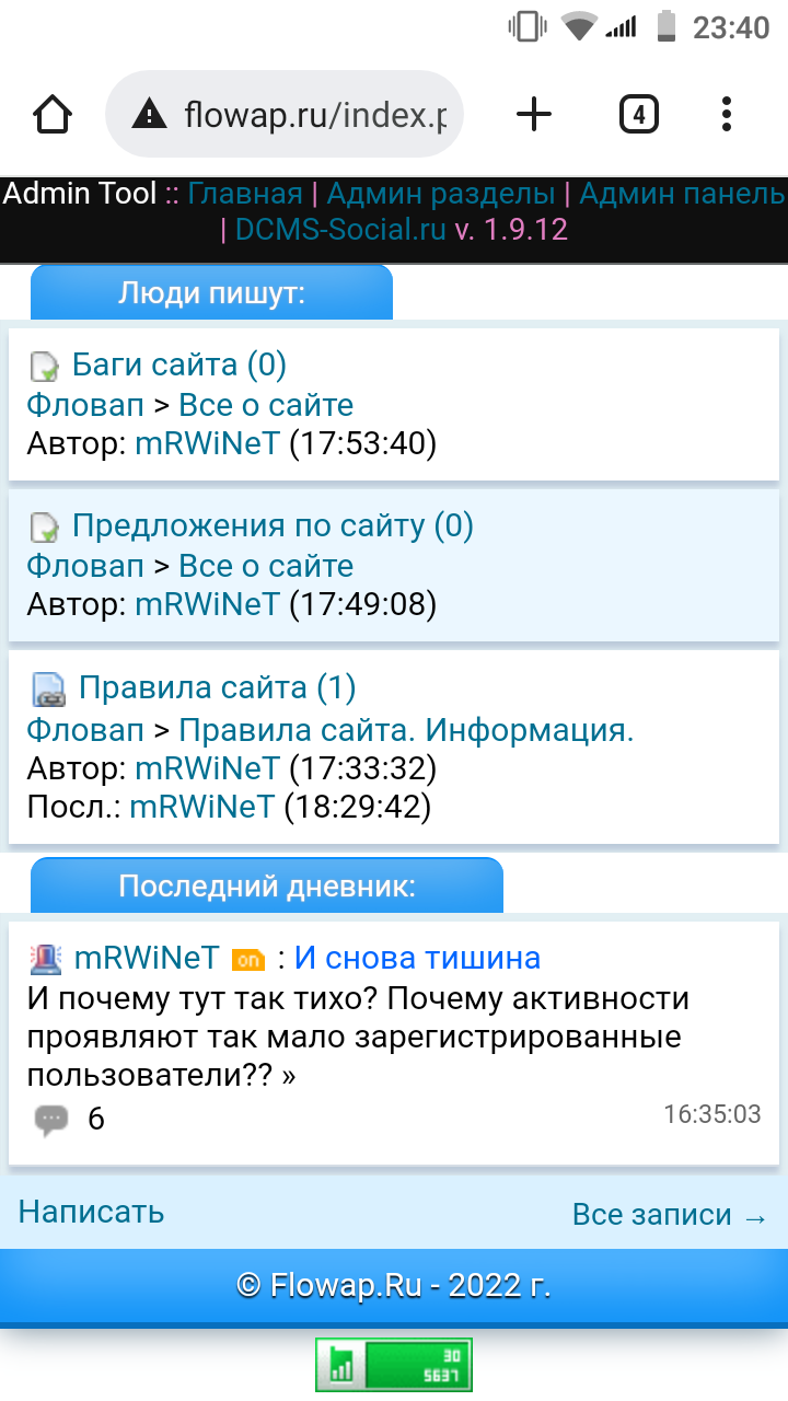 <? //Вывод тем форума $adm_add = NULL; $adm_add2 = NULL; if (!isset($user) || $user['level']==0){ $q222 = mysql_query("SELECT * FROM `forum_f` WHERE `adm` = '1'"); while ($adm_f = mysql_fetch_assoc($q222)){ $adm_add[] = "`id_forum` <> '$adm_f[id]'"; } if (sizeof($adm_add) != 0) $adm_add2 = ' WHERE'.implode(' AND ', $adm_add); } $k_post = mysql_result(mysql_query("SELECT COUNT(*) FROM `forum_t`$adm_add2"),0); $k_page = k_page($k_post,$set['p_str']); $page = page($k_page); $start = $set['p_str'] * $page - $set['p_str']; echo '<table class="post">'; $q=mysql_query("SELECT * FROM `forum_t`$adm_add2 ORDER BY `time_create` DESC LIMIT $start, 3"); //Если список пуст if ($k_post == 0) { echo '<div class="menu">Нет активных тем</div>'; } echo '<div class="menu">'; echo '<div class="st_3"></div>'; echo '<div class="st_4">'; while ($them = dbassoc($q)) { // Определение подфорума $forum = dbarray(dbquery("SELECT * FROM `forum_f` WHERE `id` = '$them[id_forum]' LIMIT 1")); // Определение раздела $razdel = dbarray(dbquery("SELECT * FROM `forum_r` WHERE `id` = '$them[id_razdel]' LIMIT 1")); // Лесенка дивов if ($num == 0) { echo '<div class="nav1">'; $num = 1; } elseif ($num == 1) { echo '<div class="nav2">'; $num = 0; } // Иконка темы echo '<img src="/style/themes/' . $set['set_them'] . '/forum/14/them_' . $them['up'] . $them['close'] . '.png" alt="" /> '; // Ссылка на тему echo '<a href="/forum/' . $forum['id'] . '/' . $razdel['id'] . '/' . $them['id'] . '/">' . text($them['name']) . '</a> <a href="/forum/' . $forum['id'] . '/' . $razdel['id'] . '/' . $them['id'] . '/?page=' . $pageEnd . '"> (' . dbresult(dbquery("SELECT COUNT(*) FROM `forum_p` WHERE `id_forum` = '$forum[id]' AND `id_razdel` = '$razdel[id]' AND `id_them` = '$them[id]'"),0) . ')</a><br/>'; // Подфорум и раздел echo '<a href="/forum/' . $forum['id'] . '/">' . text($forum['name']) . '</a> > <a href="/forum/' . $forum['id'] . '/' . $razdel['id'] . '/">' . text($razdel['name']) . '</a><br />'; // Автор темы $ank = dbassoc(dbquery("SELECT * FROM `user` WHERE `id` = $them[id_user] LIMIT 1")); echo 'Автор: <a href="/info.php?id=' . $ank['id'] . '">' . $ank['nick'] . '</a> (' . vremja($them['time_create']) . ')<br />'; // Последний пост $post = dbarray(dbquery("SELECT * FROM `forum_p` WHERE `id_them` = '$them[id]' AND `id_razdel` = '$razdel[id]' AND `id_forum` = '$forum[id]' ORDER BY `time` DESC LIMIT 1")); // Автор последнего поста if($post['id']) { $ank2 = dbassoc(dbquery("SELECT * FROM `user` WHERE `id` = $post[id_user] LIMIT 1")); if ($ank2['id']) echo 'Посл.: <a href="/info.php?id=' . $ank2['id'] . '">' . $ank2['nick'] . '</a> (' . vremja($post['time']) . ')<br />'; } echo '</div>'; } echo '</table>'; // Вывод cтраниц ?> Страшно, очень даже смотреть.