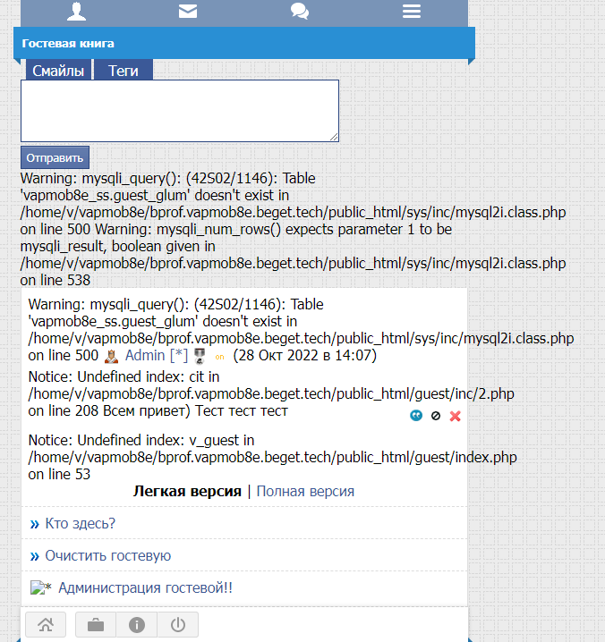 там и не только гостевая задета, там еще уведомелния, спам , они есть?
