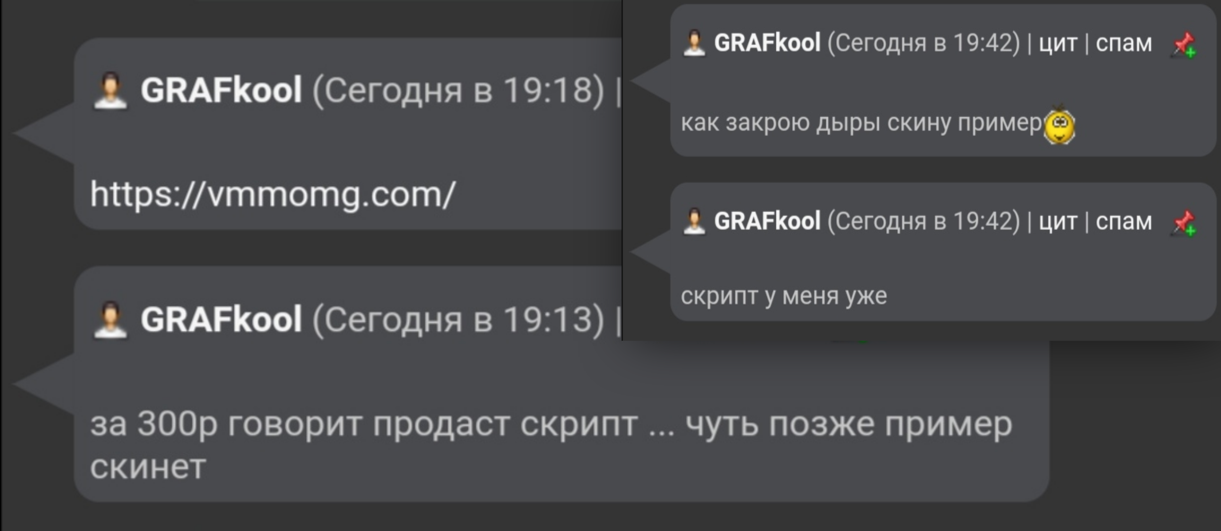 Не выжу действей админов за продажу чижих модов и работ тут 40% на доске факт продаже есть даже 2 ну люди умные и не куплюят в барыге