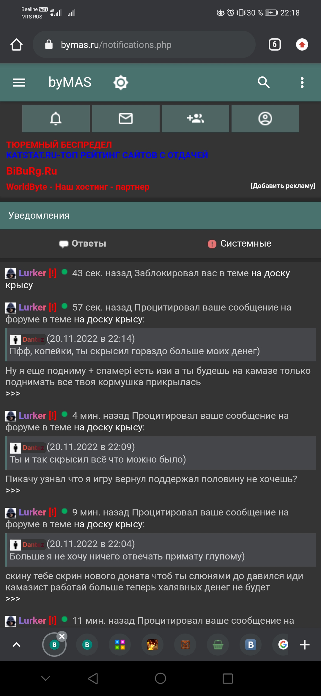 Lurker Заблокал? Ммм. Что же ты прицепился к моей работе? Жаба душит? Я по крайней мере работаю, а не как ты в интернете людей кидаешь. Запомни, кто работает на нормальной работе и поступает честно - добьются многого. А такие как ты - сгниют в тюрьме. Но рано или поздно тебя найдут и выбьют из тебя всё - что ты украл, нарвешься однажды.