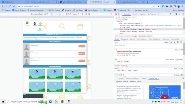 <div class="content-wrapper"> <heider>тут меню </heider> <div class="container clearfix"> <main class="content"> тут основной контейнер </main> </div> <footer class="footer"> Footer </footer> </div> css