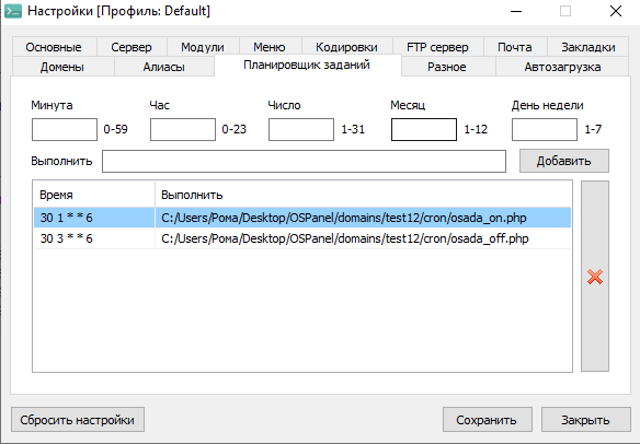 "%progdir%\modules\php\%phpdriver%\php-win.exe" -c "%progdir%\modules\php\%phpdriver%\php.ini" -q -f "C:\Users\Рома\Desktop\OSPanel\domains\test12\cron\osada_on.php"